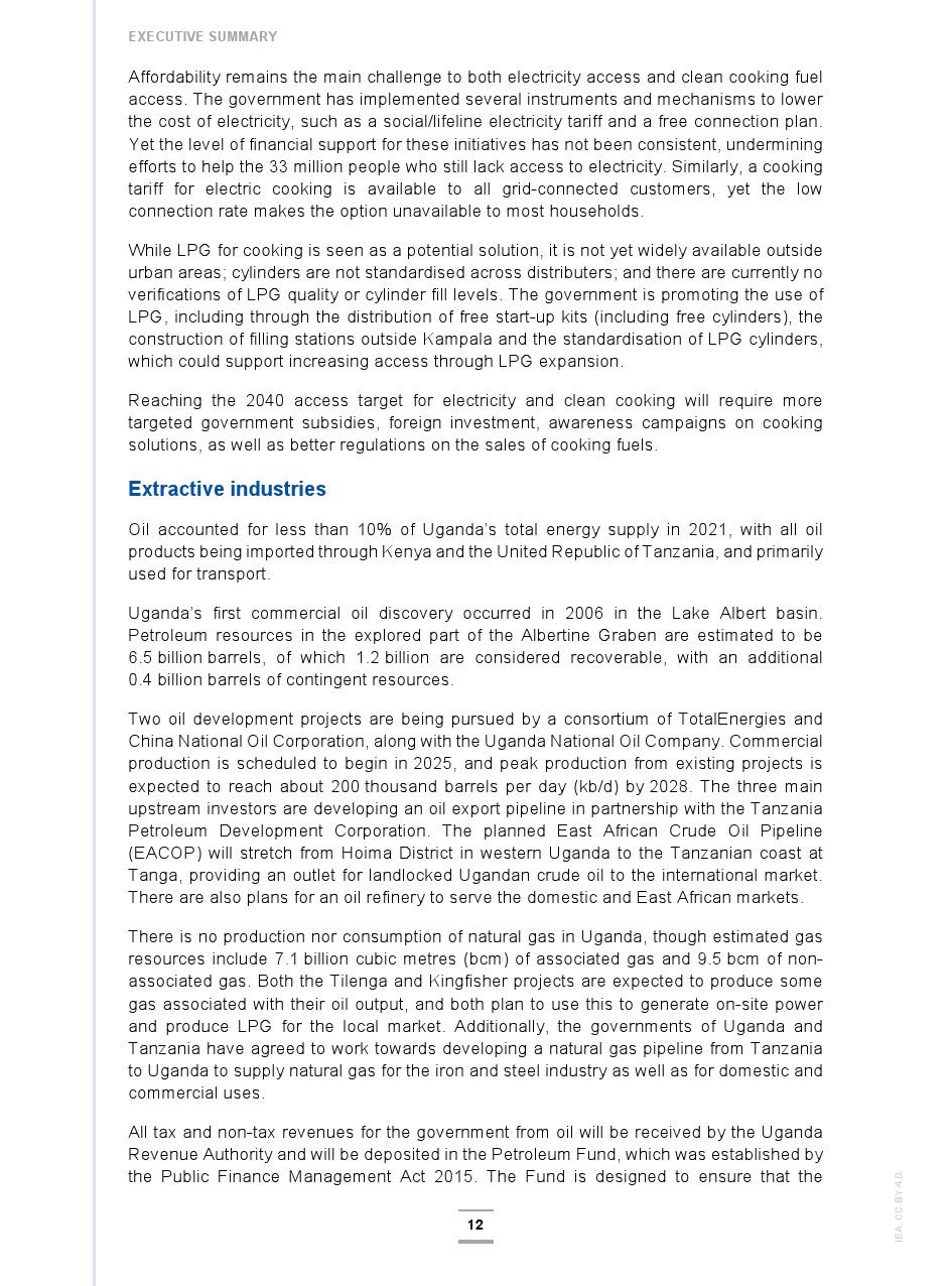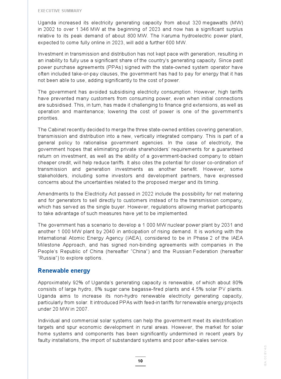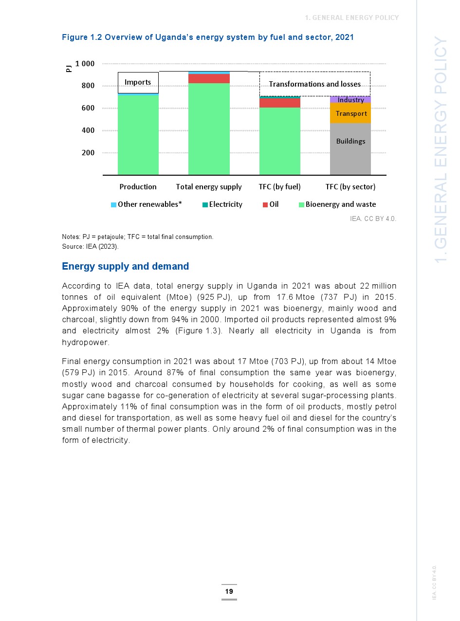 IEA发布了“2023年乌干达能源政策评价”。乌干达制定了一项雄心勃勃的议程,以开发其丰富的能源和矿产资源,促进经济发展,结束能源贫困,并领导该国实现公正的能源转型。在其《2040年愿景》中提出的目标是转型为“一个现代化和繁荣的国家”,确保其公民拥有更美好的未来。能源行业将在帮助乌干达实现这一目标方面发挥重要作用。