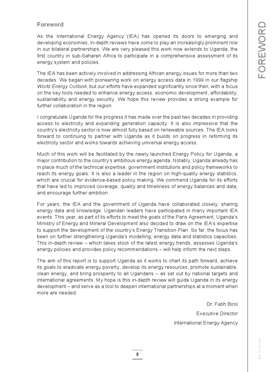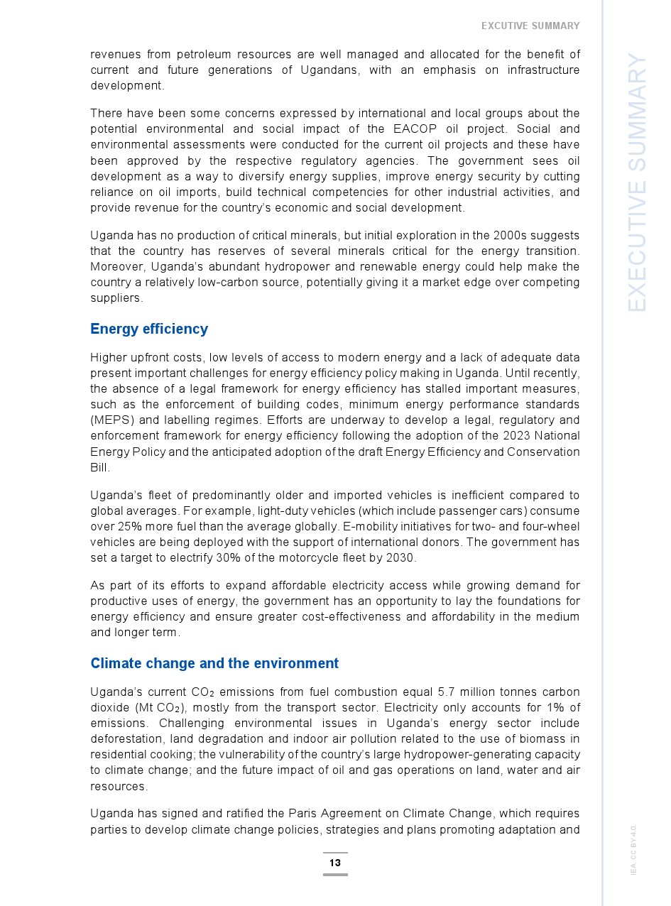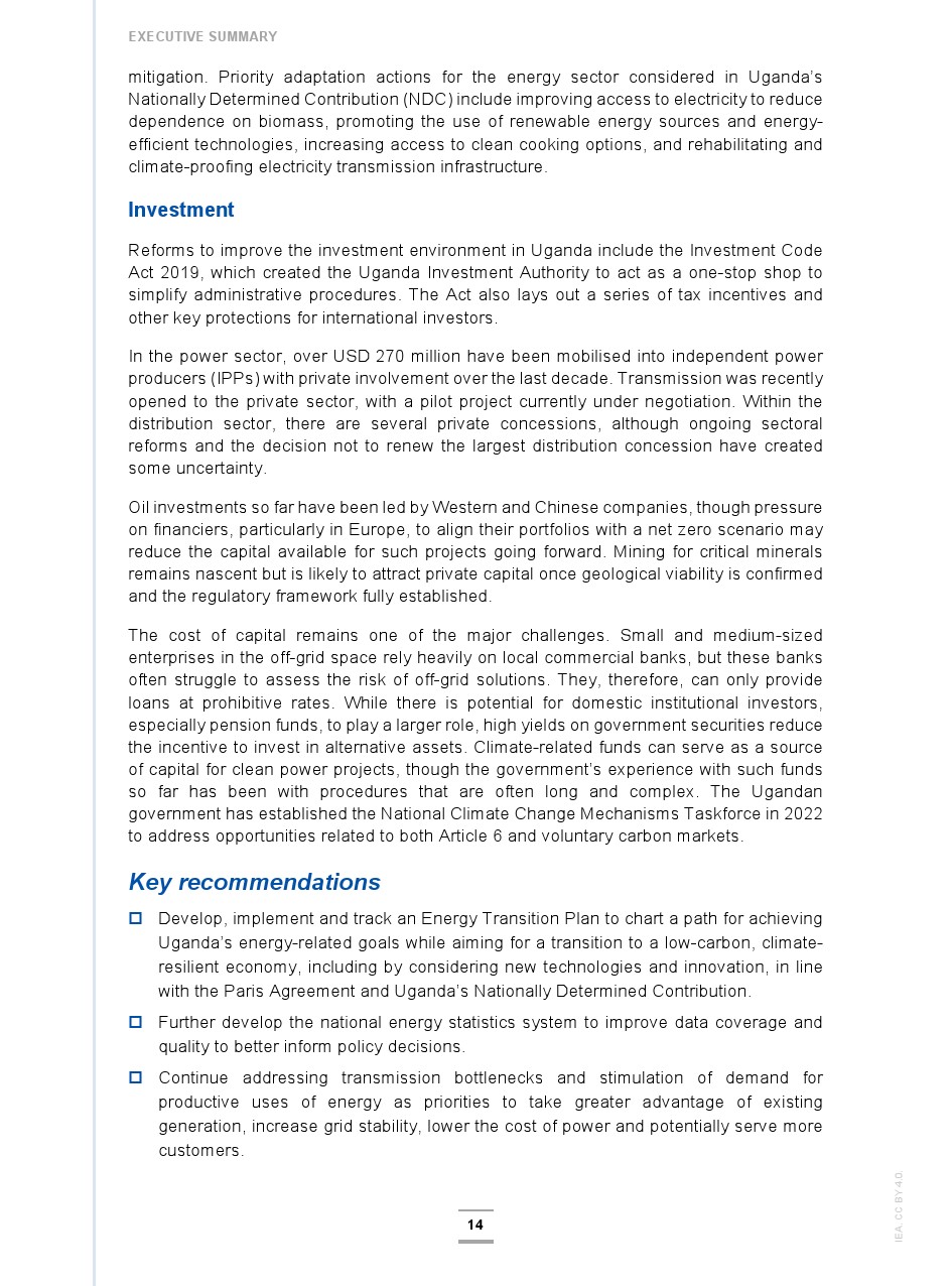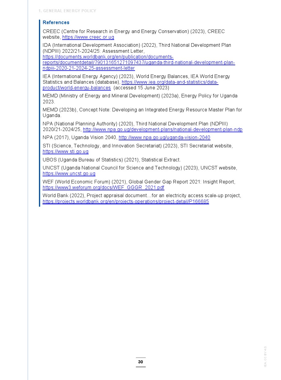 IEA发布了“2023年乌干达能源政策评价”。乌干达制定了一项雄心勃勃的议程,以开发其丰富的能源和矿产资源,促进经济发展,结束能源贫困,并领导该国实现公正的能源转型。在其《2040年愿景》中提出的目标是转型为“一个现代化和繁荣的国家”,确保其公民拥有更美好的未来。能源行业将在帮助乌干达实现这一目标方面发挥重要作用。