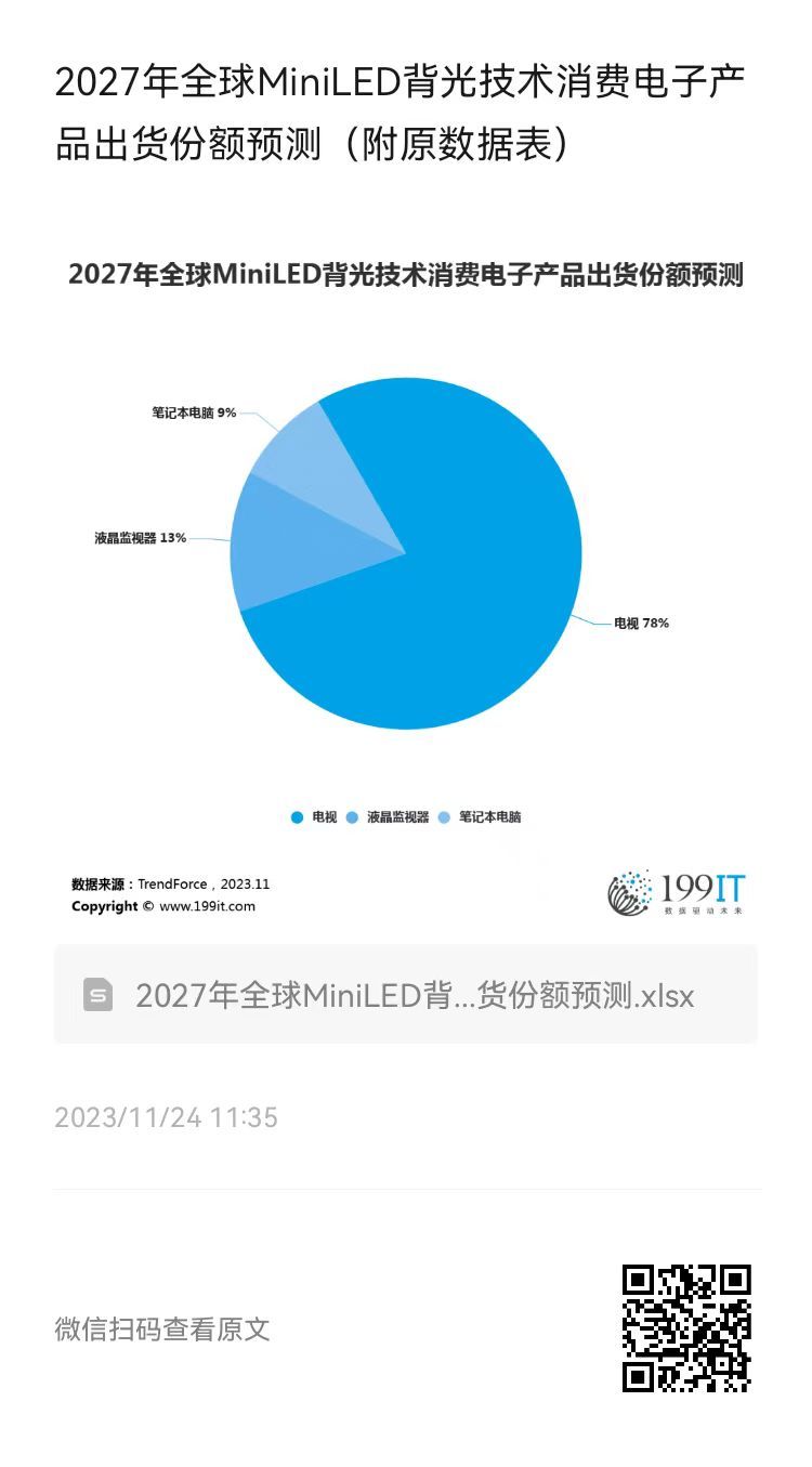 2027年全球MiniLED背光技术消费电子产品出货份额预测(附原数据表) ​​​