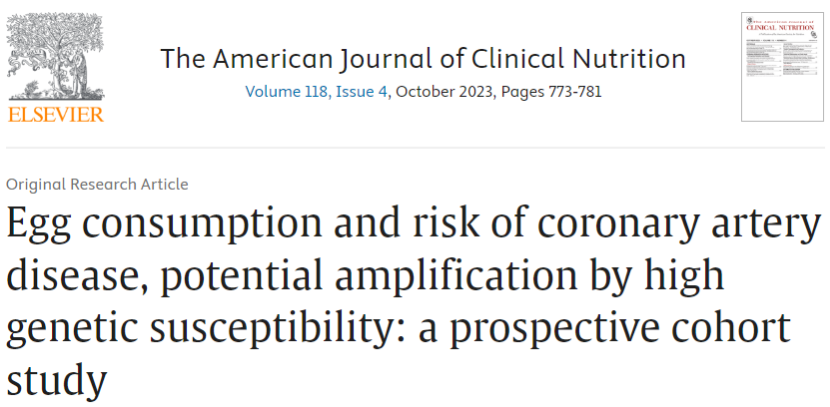 近日,阜外医院顾东风、鲁向锋及团队的一项前瞻性队列研究,发现鸡蛋摄入量较高、多基因风险评分较高均与冠心病风险增加有关。每周鸡蛋摄入量每增加3个,在低至中等遗传风险的人群中,冠心病风险增加5%,而在高遗传风险人群中,冠心病风险增加10%。该研究题为“Egg consumption and risk of coronary artery disease, potential amplification by high genetic susceptibility: a prospective cohort study”,发表在The American Journal of Clinical Nutrition杂志。