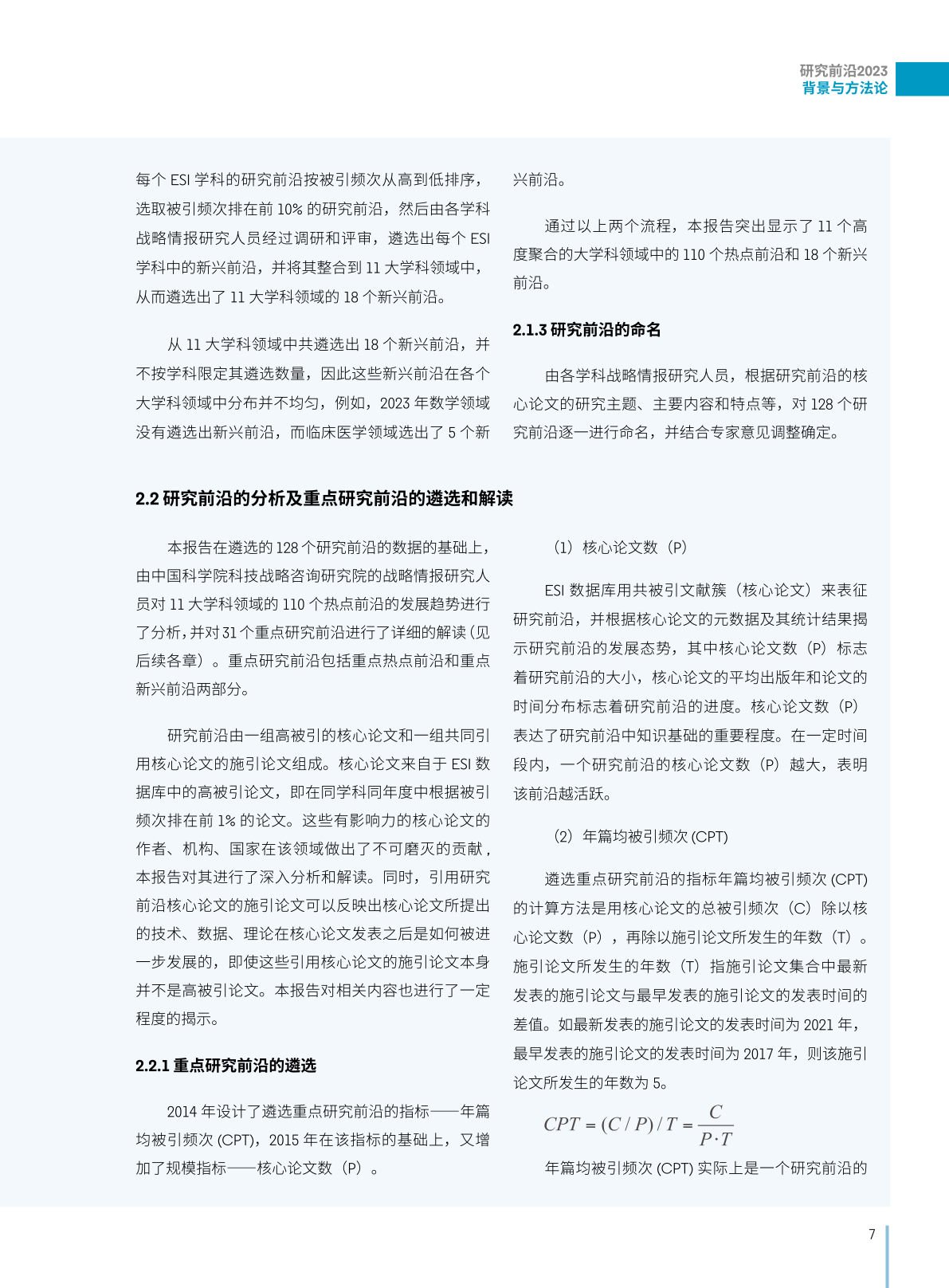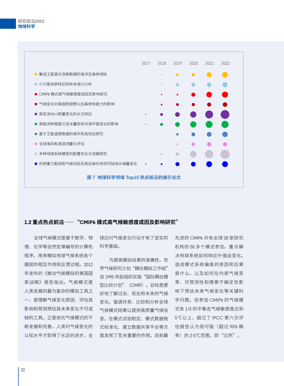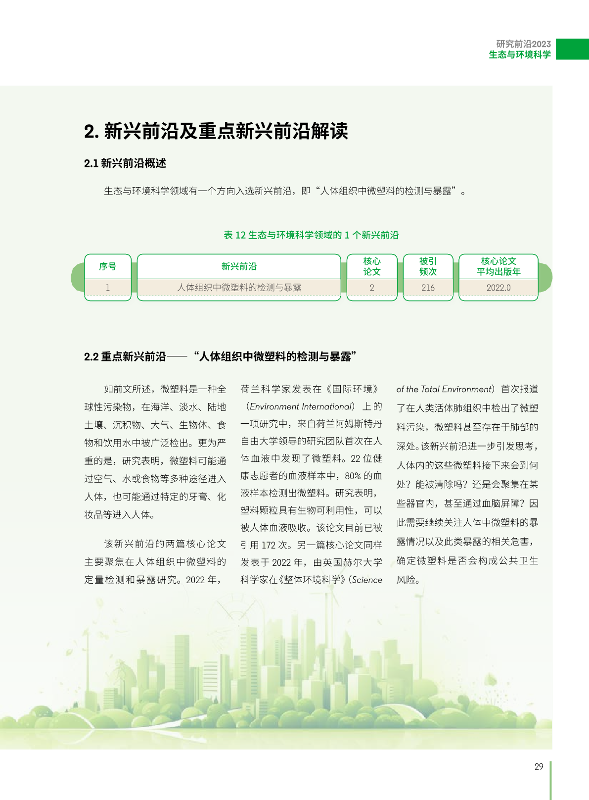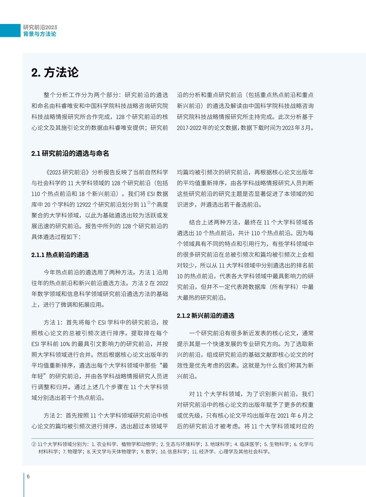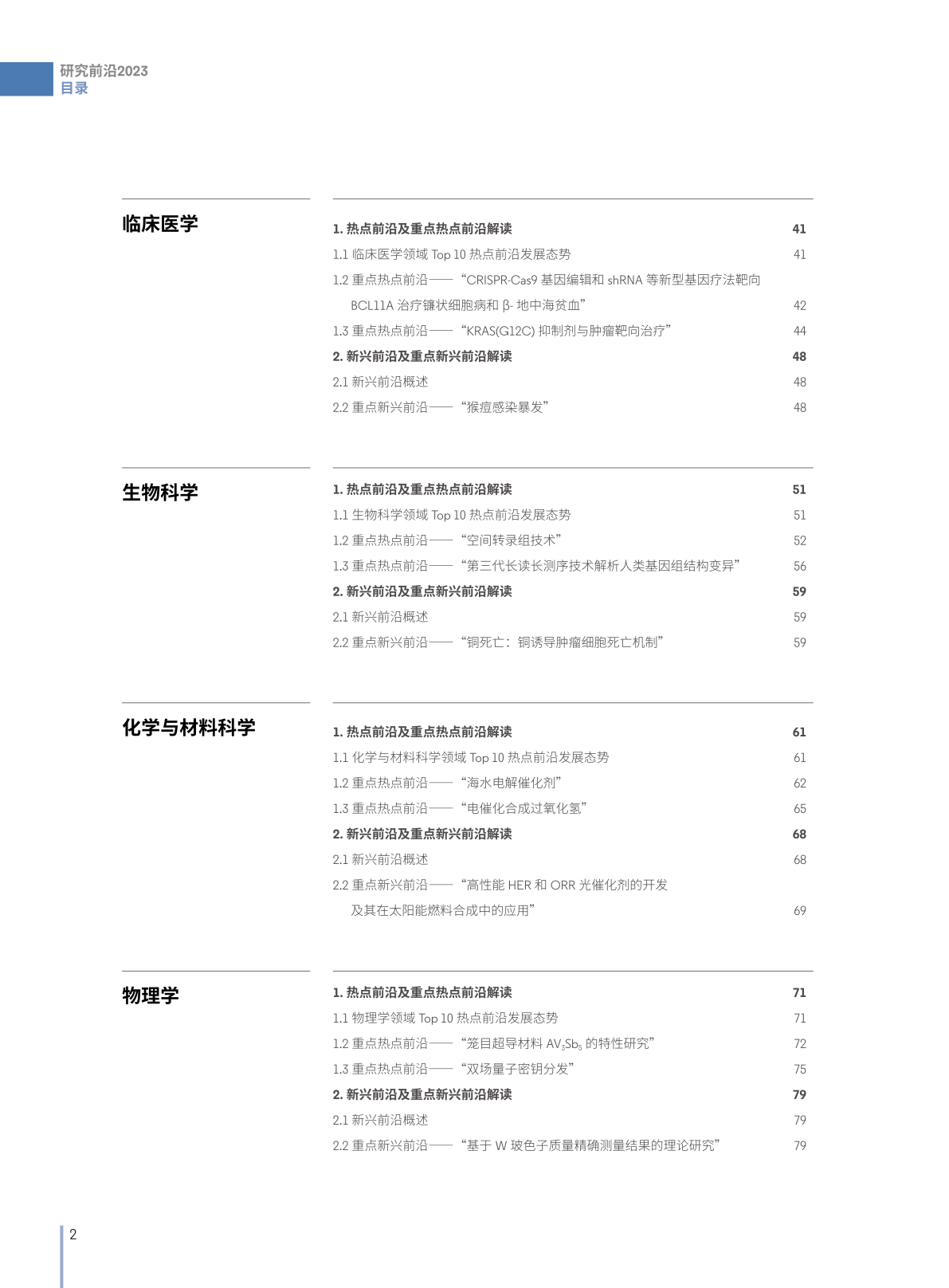 述子领域的研究已经持续 多年入选研究前沿报告。尤其值得 注意的是,今年有多个热点前沿曾 多次连续入选 Top10 热点前沿, 其中植物基因组子领域的作物泛基 因组研究和植物免疫调控子领域的 NLR 免疫受体介导的植物免疫机制 研究,均从 2021 年起连续三年入 选。而目前热度较高的植物肉与细 胞培养肉的替代性研究则首次入选 Top10 热点前沿。