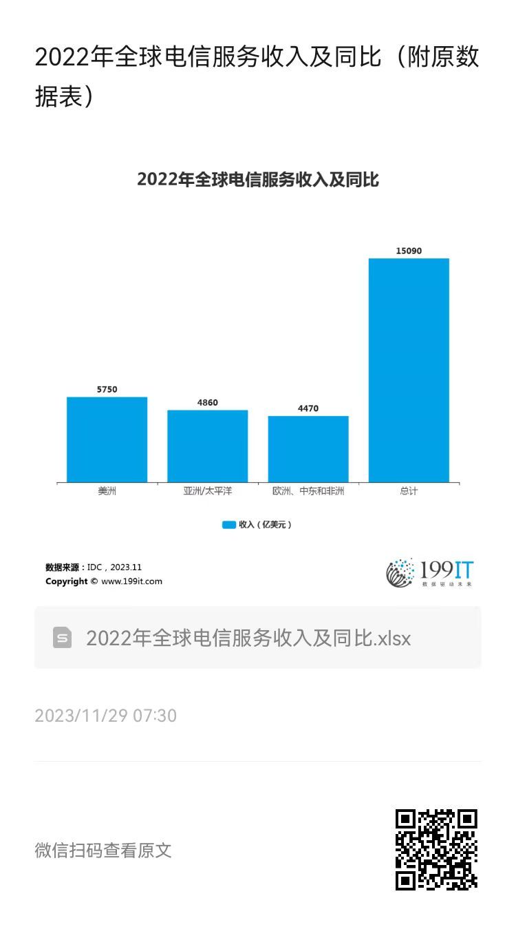 - 2023年全球电信服务收入及同比(附原数据表)