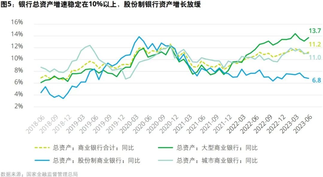 股份制银行资产规模收缩、城商行和农商行资产增长较快