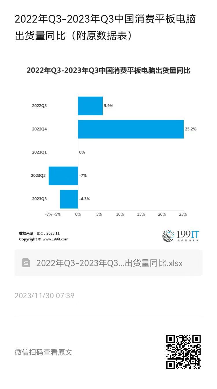 - 2022年Q1-2023年Q1中国消费平板电脑出货量同比增长率(附原数据表)
