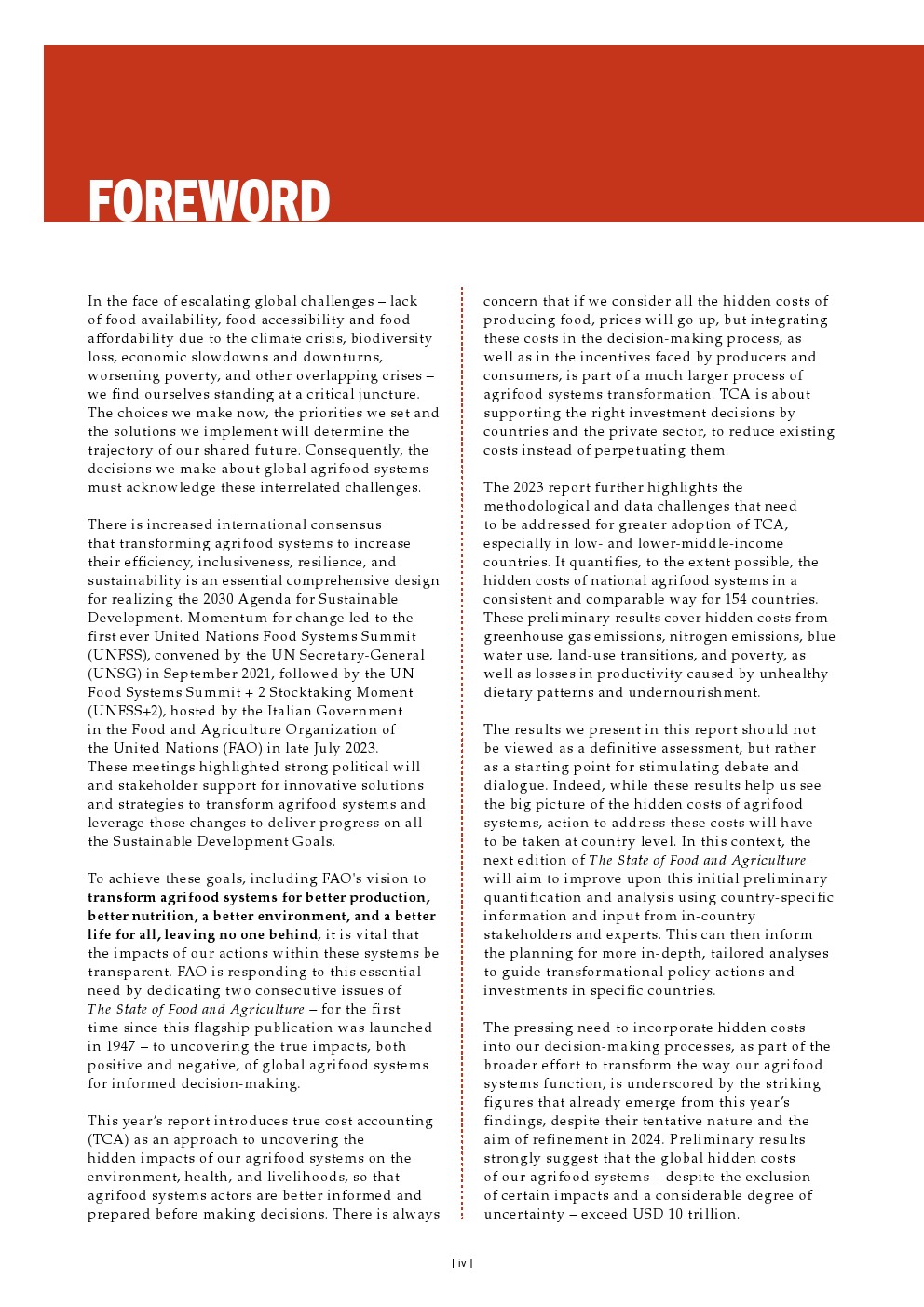联合国粮食及农业组织发布了“2023年食品和农业报告”,揭示了粮食的真实成本,以改变农粮系统。