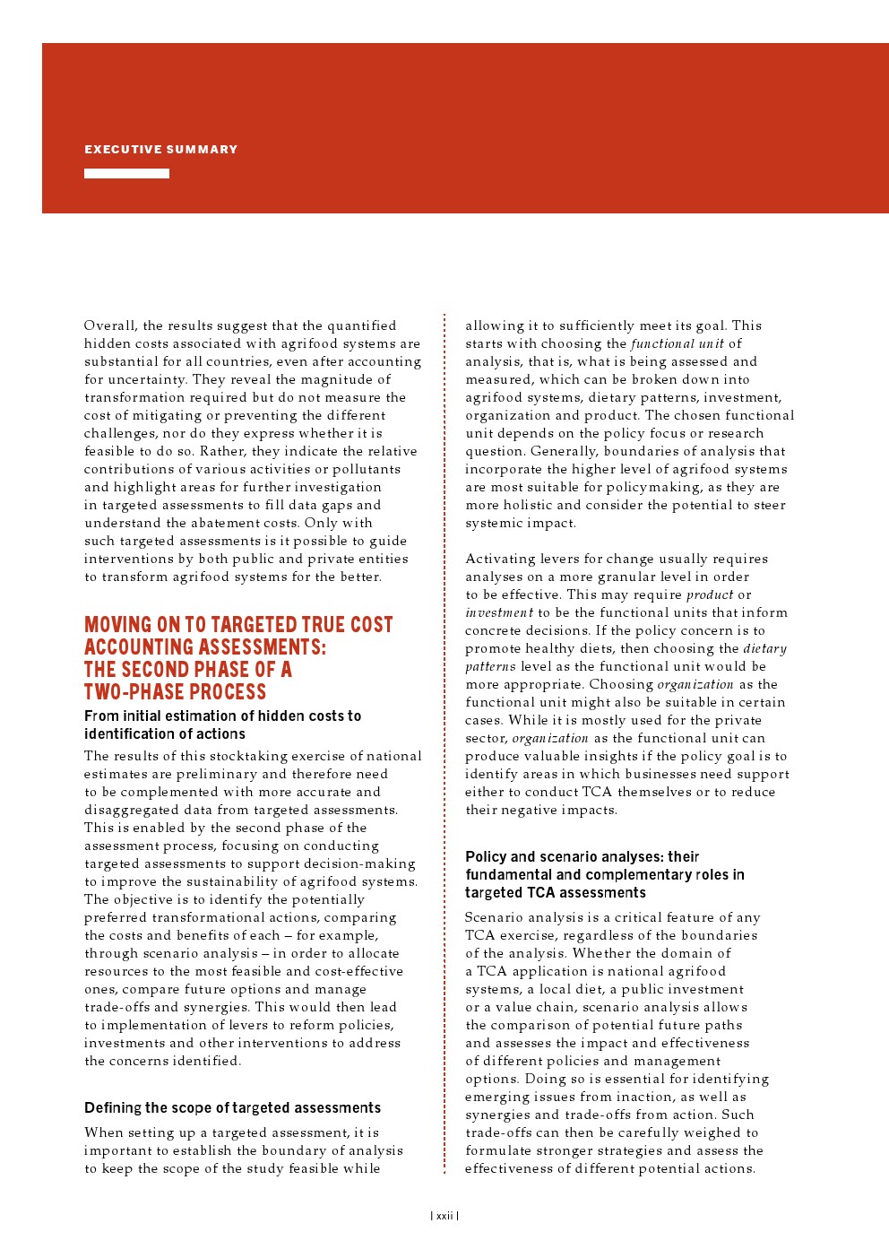对国家估计数进行盘点的结果是初步的,因此需要有针对性评估的更准确和分类的数据加以补充。这可以通过评估过程的第二阶段来实现,该阶段侧重于开展有针对性的评估,以支持决策,以提高农业粮食系统的可持续性。