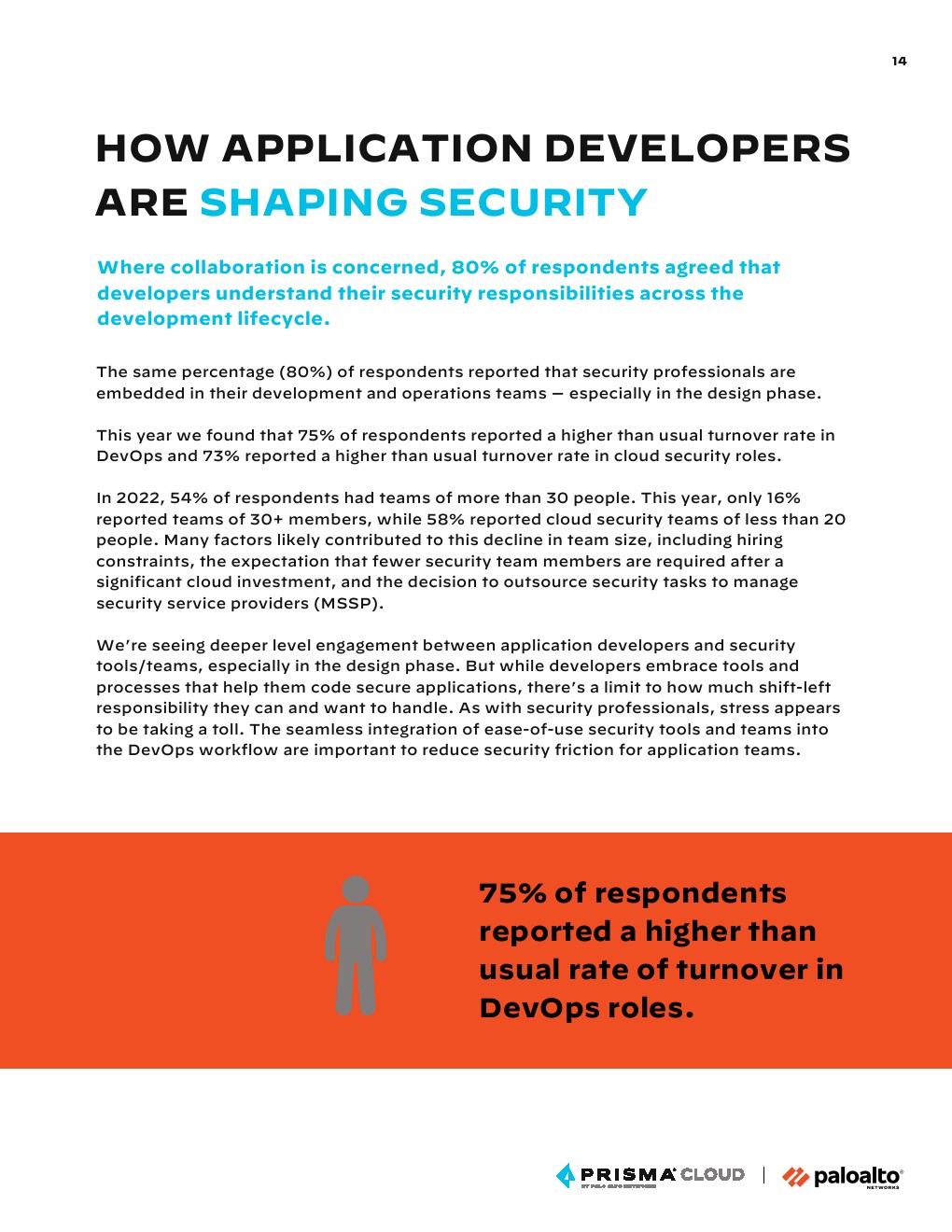 云安全是动态的和不可预测的,但是向混合工作的迁移加速了变化并增加了应用程序安全的复杂性。随着云原生应用程序开发的发展,企业的云基础设施也在发展,80%的受访者表示他们的云基础设施正在发展。更重要的是,云已经改变了应用程序的生命周期,DevOps现在以惊人的速度交付产品代码,安全人员也在努力跟上。