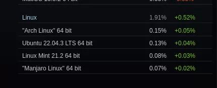 深入到纯 Linux 的数据显示,约有 43% 的 Linux 玩家使用 Valve 的 SteamOS。
