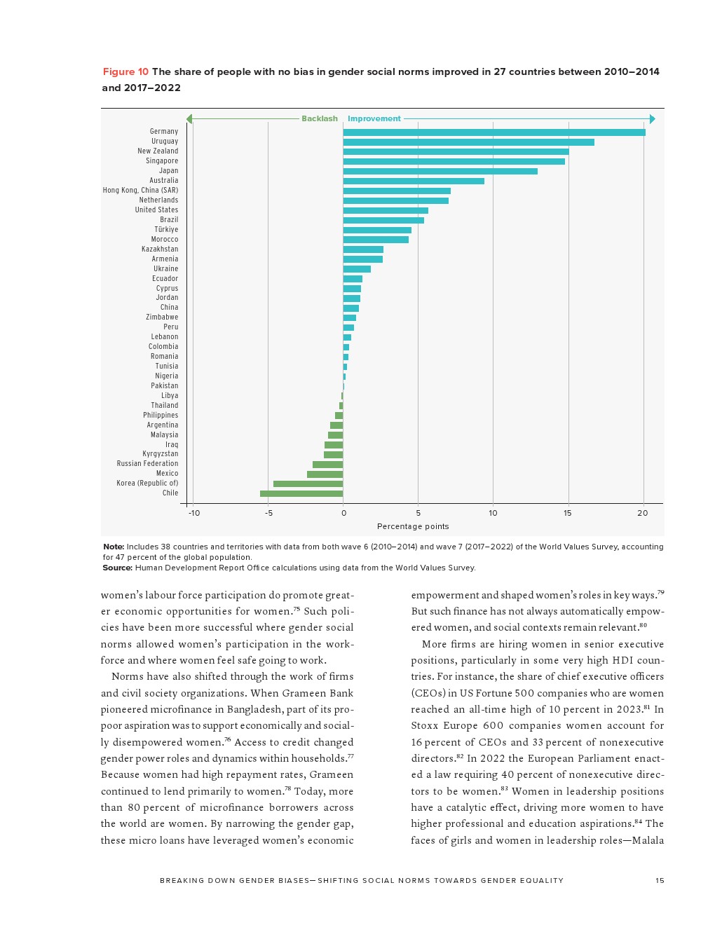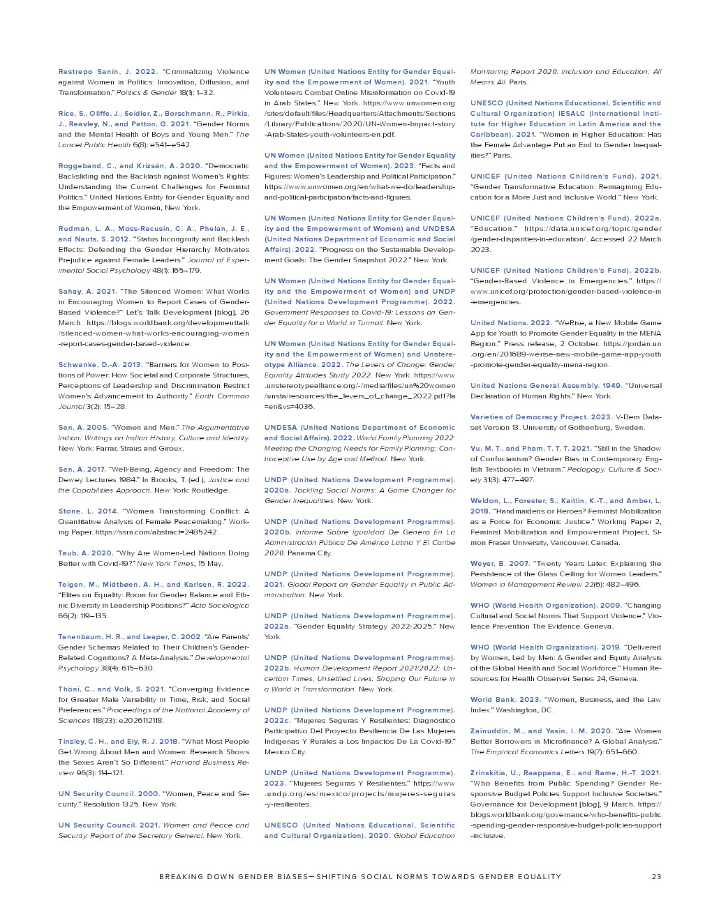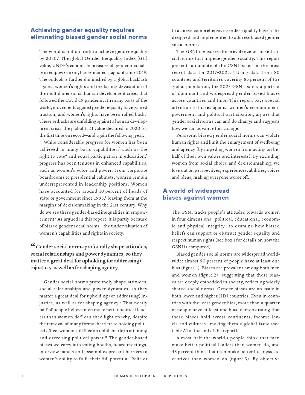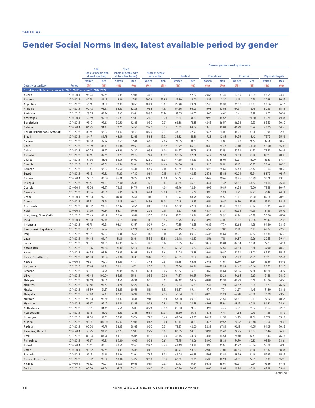 联合国开发计划署发布了“2023年性别社会规范指数”。如果不解决有偏见的性别社会规范,我们就无法实现可持续发展目标所体现的性别平等。有偏见的性别社会规范(低估女性在社会中的能力和权利)通过规范行为和设定女性应该做什么和成为什么人,限制了女性的选择和机会。有偏见的性别社会规范是实现性别平等和增强所有妇女和女童权能(可持续发展目标5)的主要障碍。
