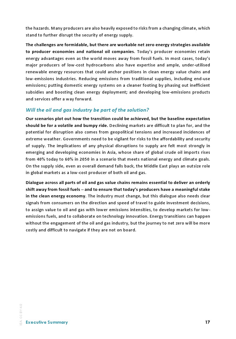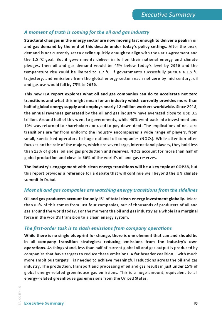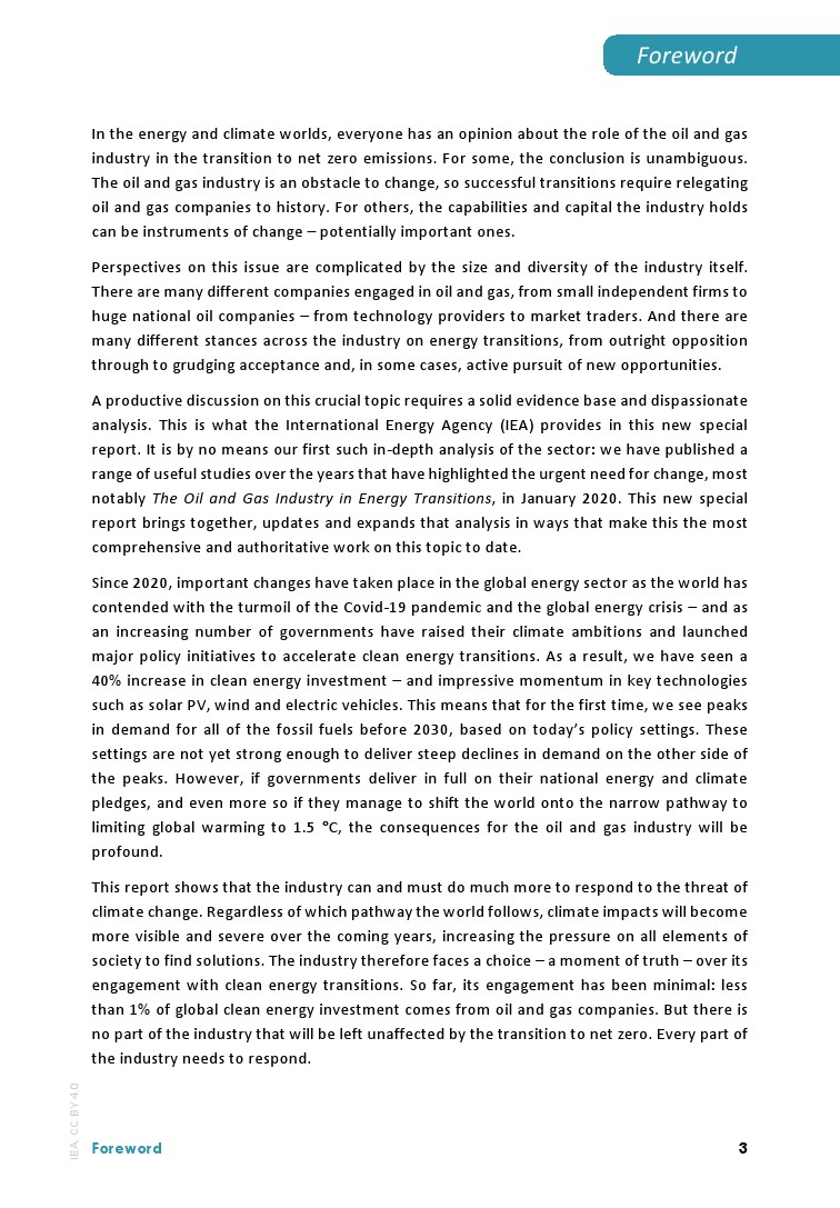 国际能源署发布了最新报告“石油和天然气行业的净零转型”。石油和天然气行业的关键时刻即将到来。目前,能源行业的结构性变化速度之快,足以在当前政策环境下,在2030年末达到油气需求峰值。