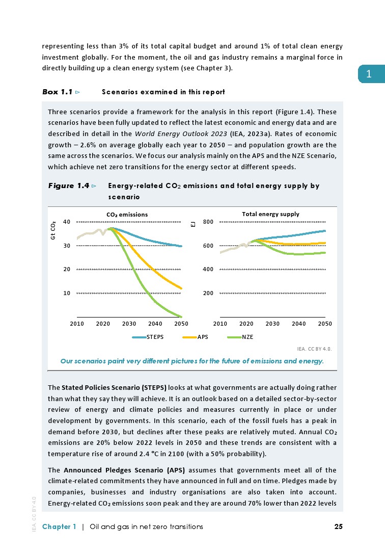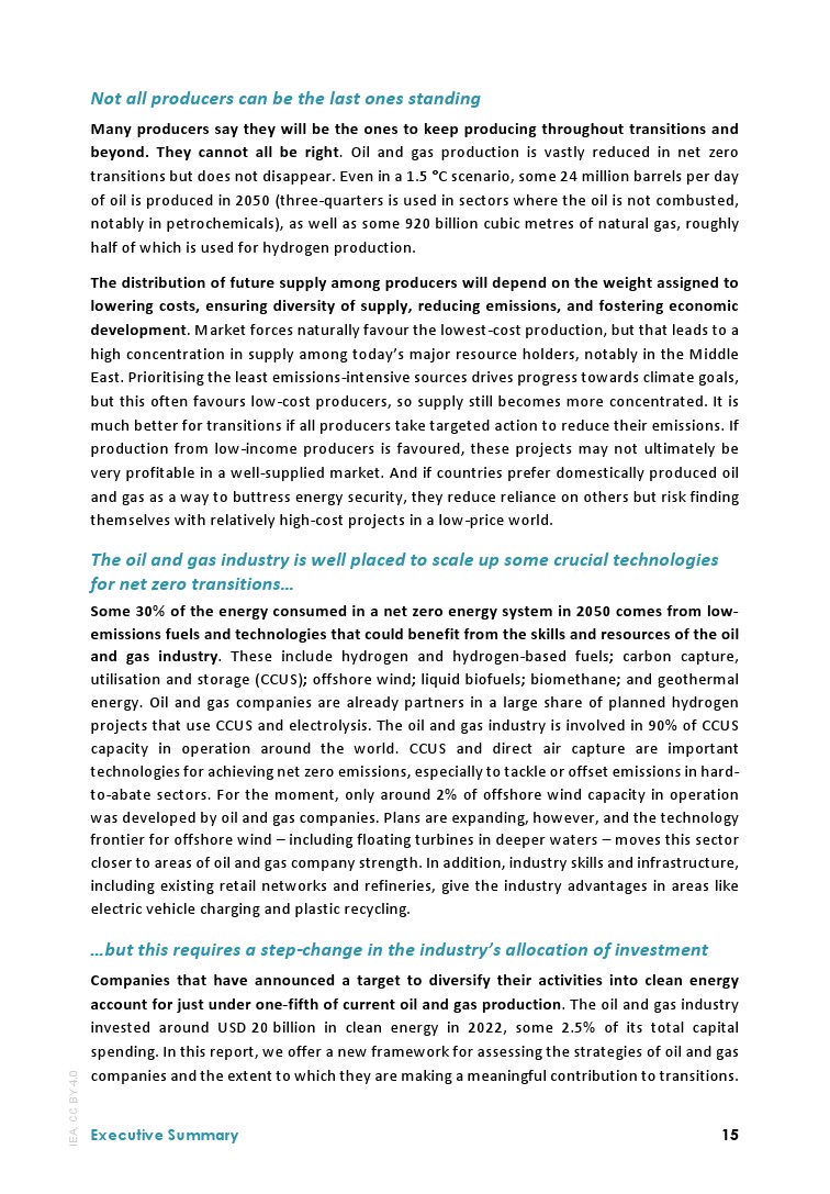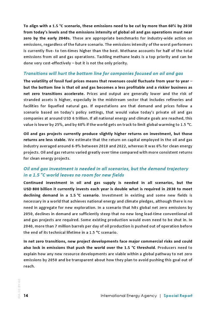在所有情况下都需要继续投资石油和天然气供应,但目前每年投资8000亿美元是2030年满足1.5°C情景所需资金的两倍。