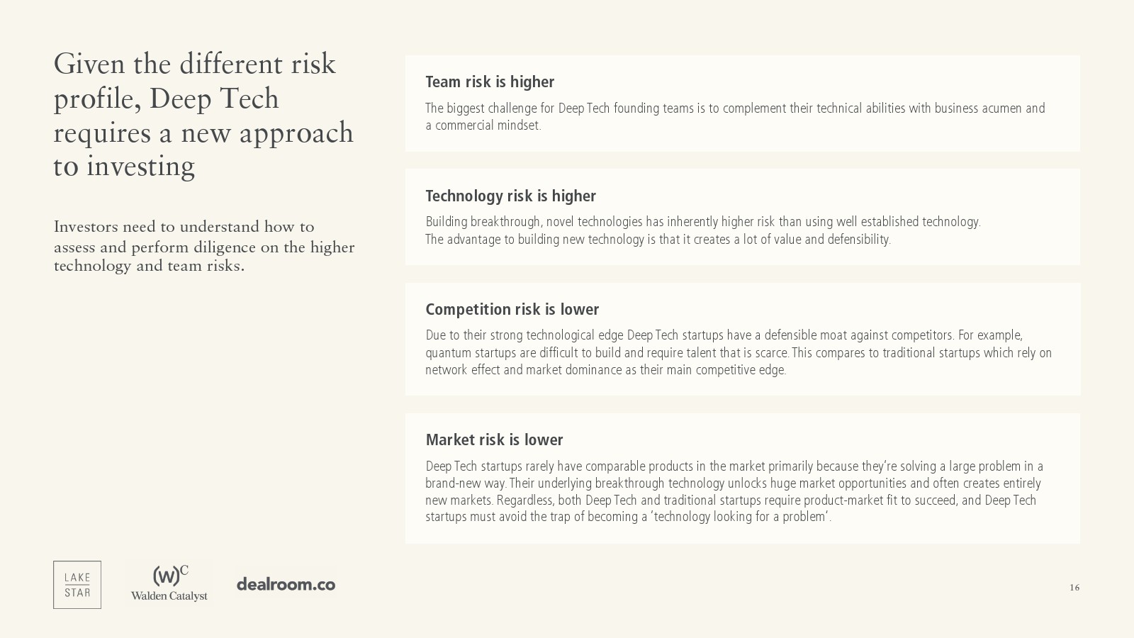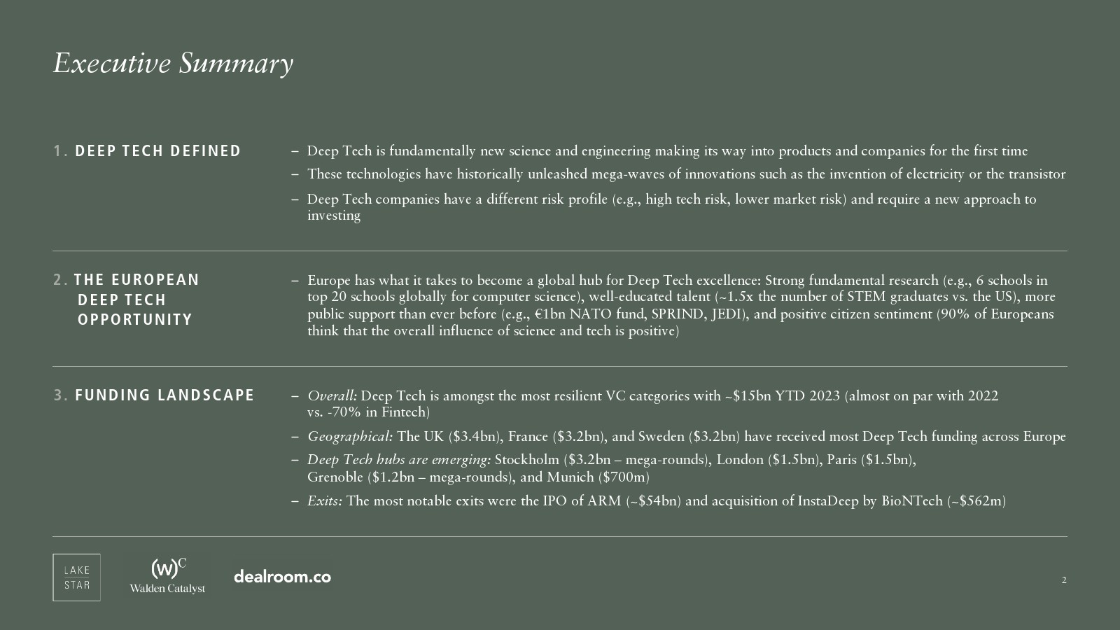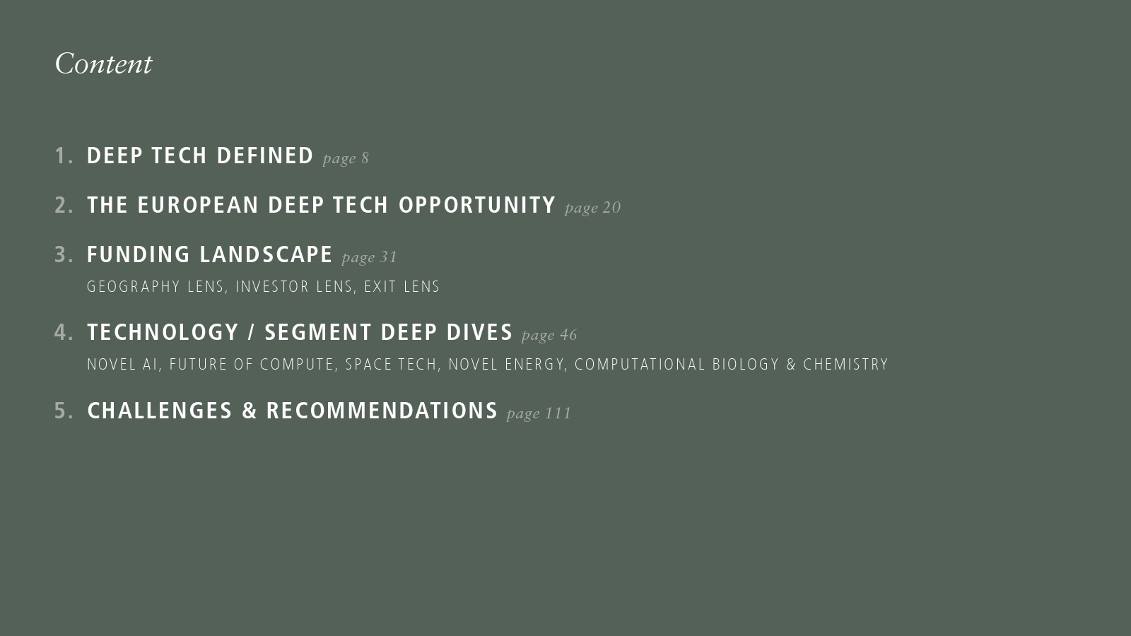 欧洲仍然面临的一些最大挑战,如鼓励更多的企业家进入深度科技,协调大学衍生条款,形成更密集的人才/卓越集群,提高有限合伙人基础和机构投资者的参与,强调政府和企业作为客户的重要性,加强投资退出渠道,以及促进创始人和投资者的多样性。
