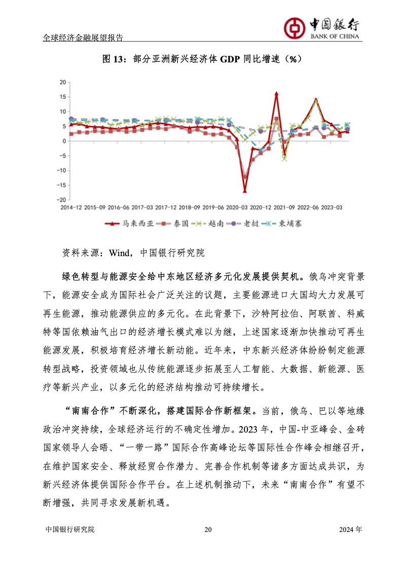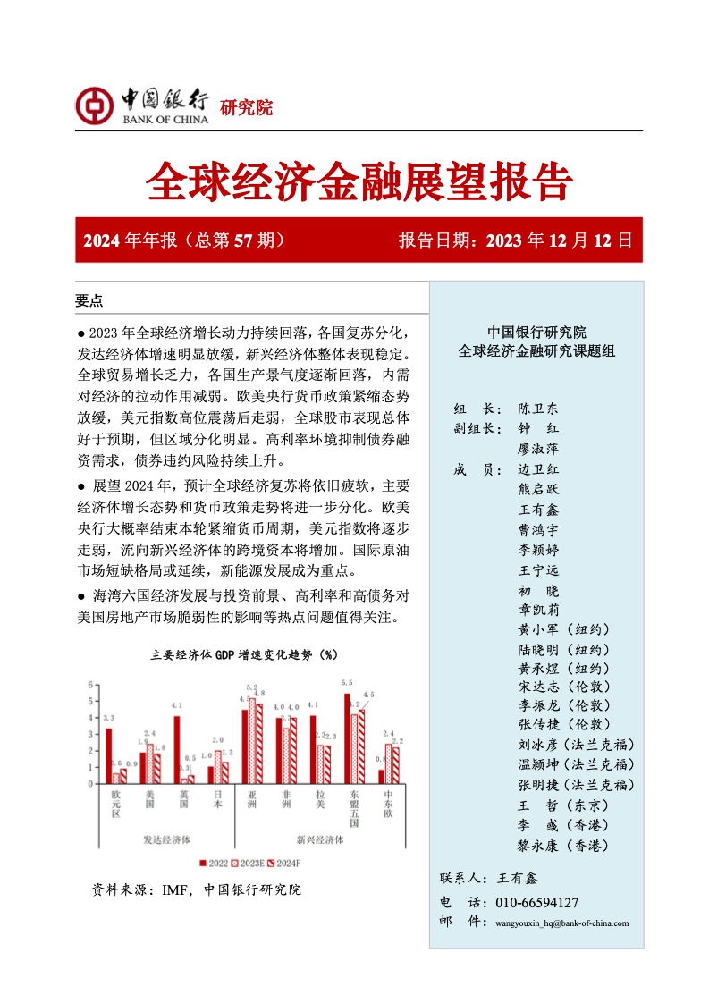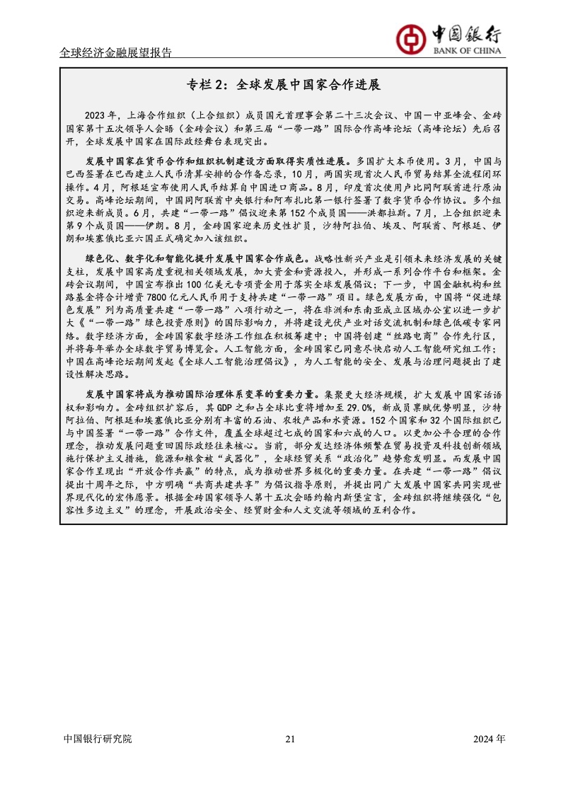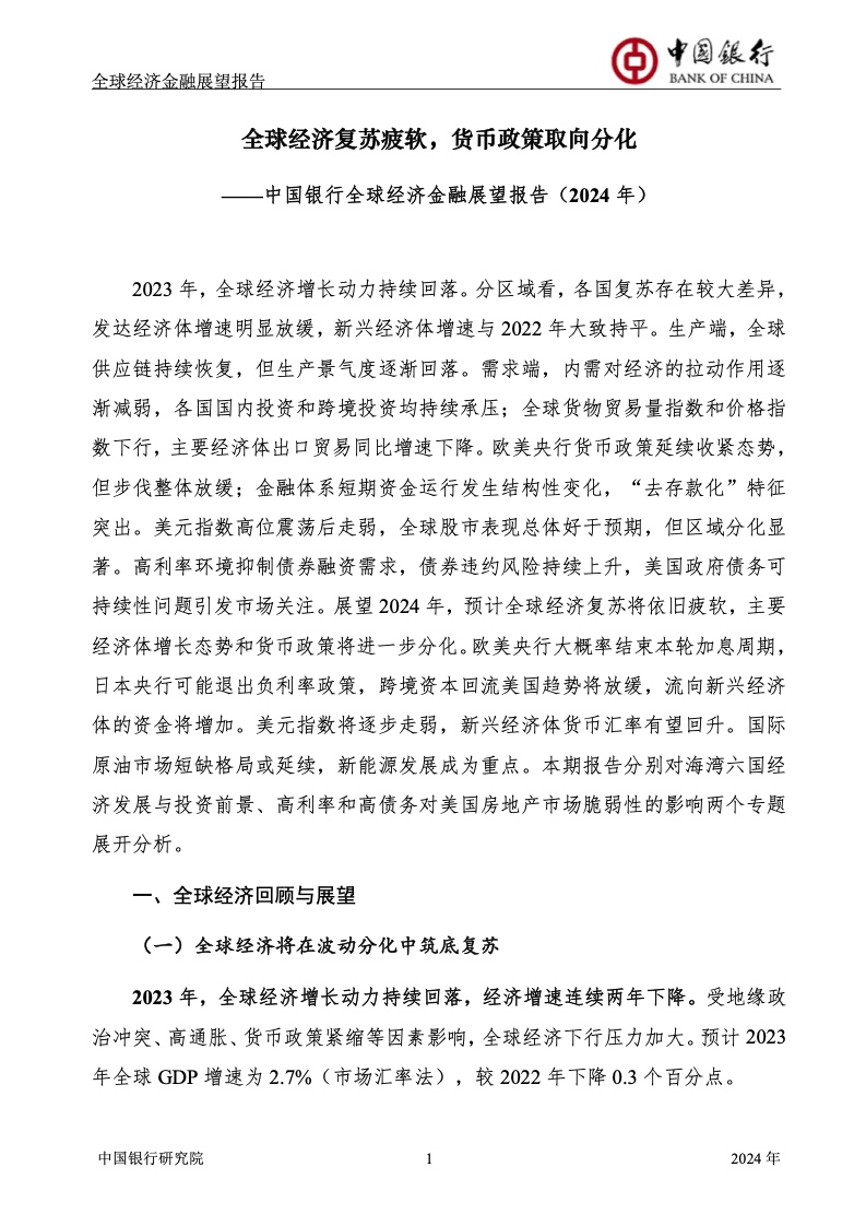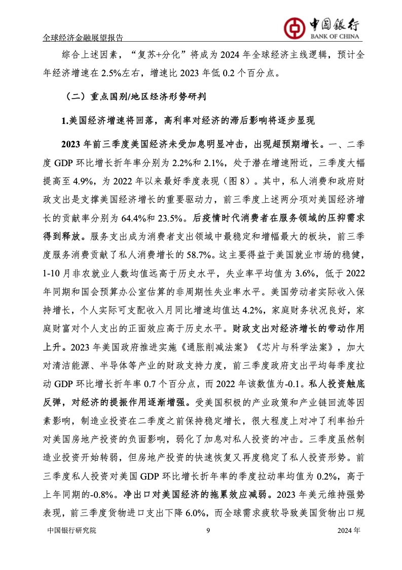 《报告》还分别对海湾六国经济发展与投资前景、高利率和高债务对美国房地产市场脆弱性的影响等热点问题进行专题分析。