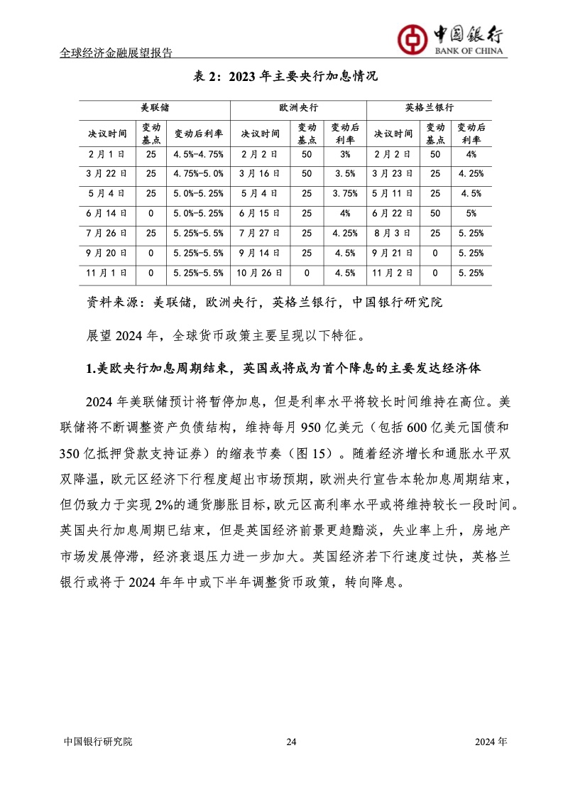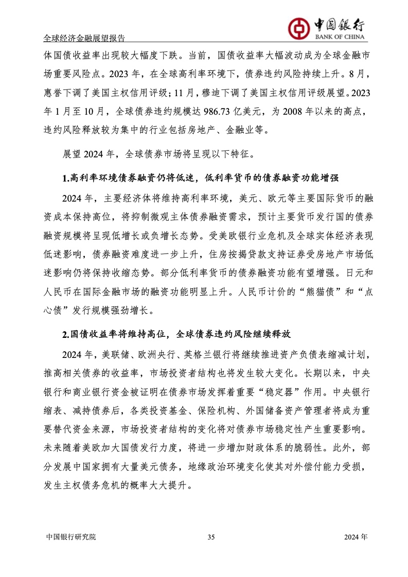 高利率环境抑制债券融资需求,债券违约风险持续上升。展望2024年,预计全球经济复苏将依旧疲软,主要经济体增长态势和货币政策走势将进一步分化。