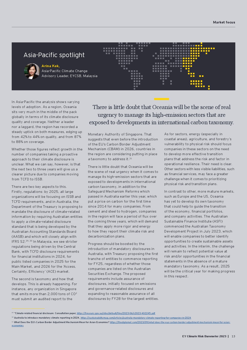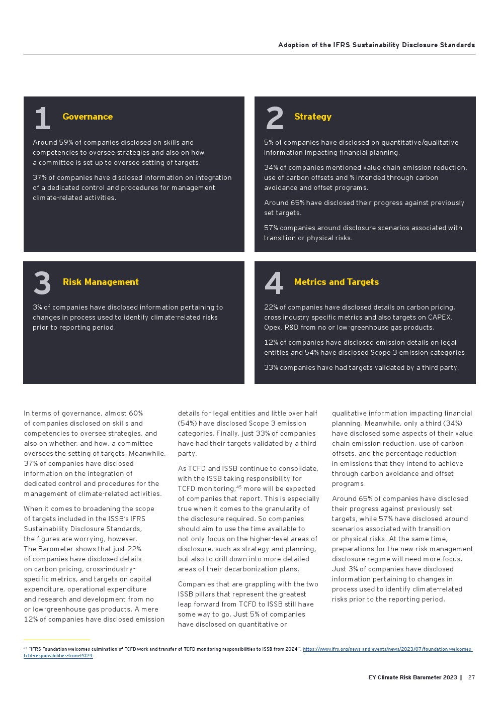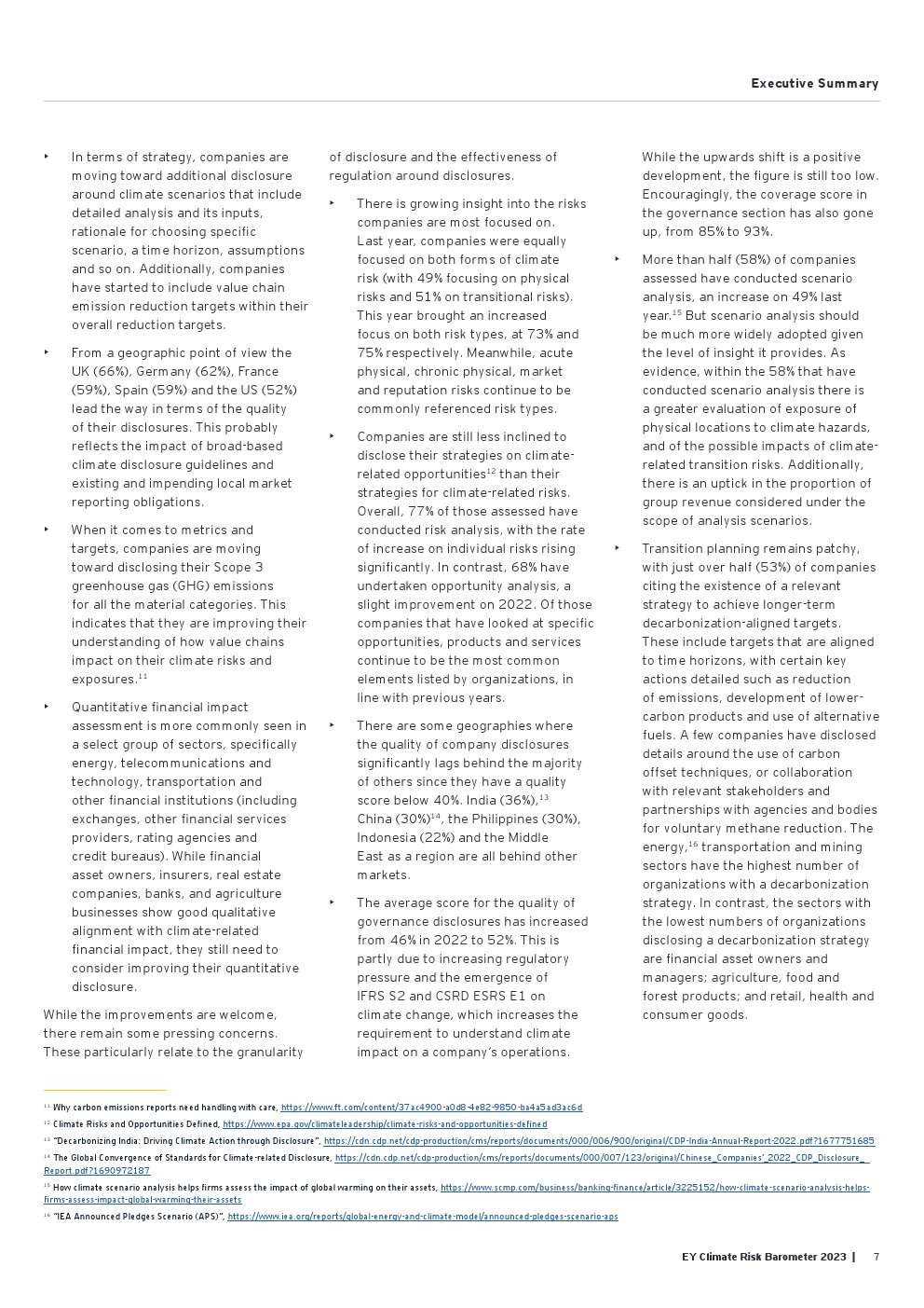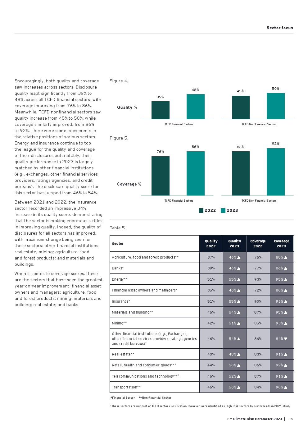 好消息是信息披露继续朝着正确的方向发展,从2022年的84%增加到2023年的90%。气候信息披露的质量仍然很低,仅为50%,由于需要为新的国际可持续发展标准委员会(ISSB)法规的要求做好准备,才有了渐进式的改善(同比增长6%)。