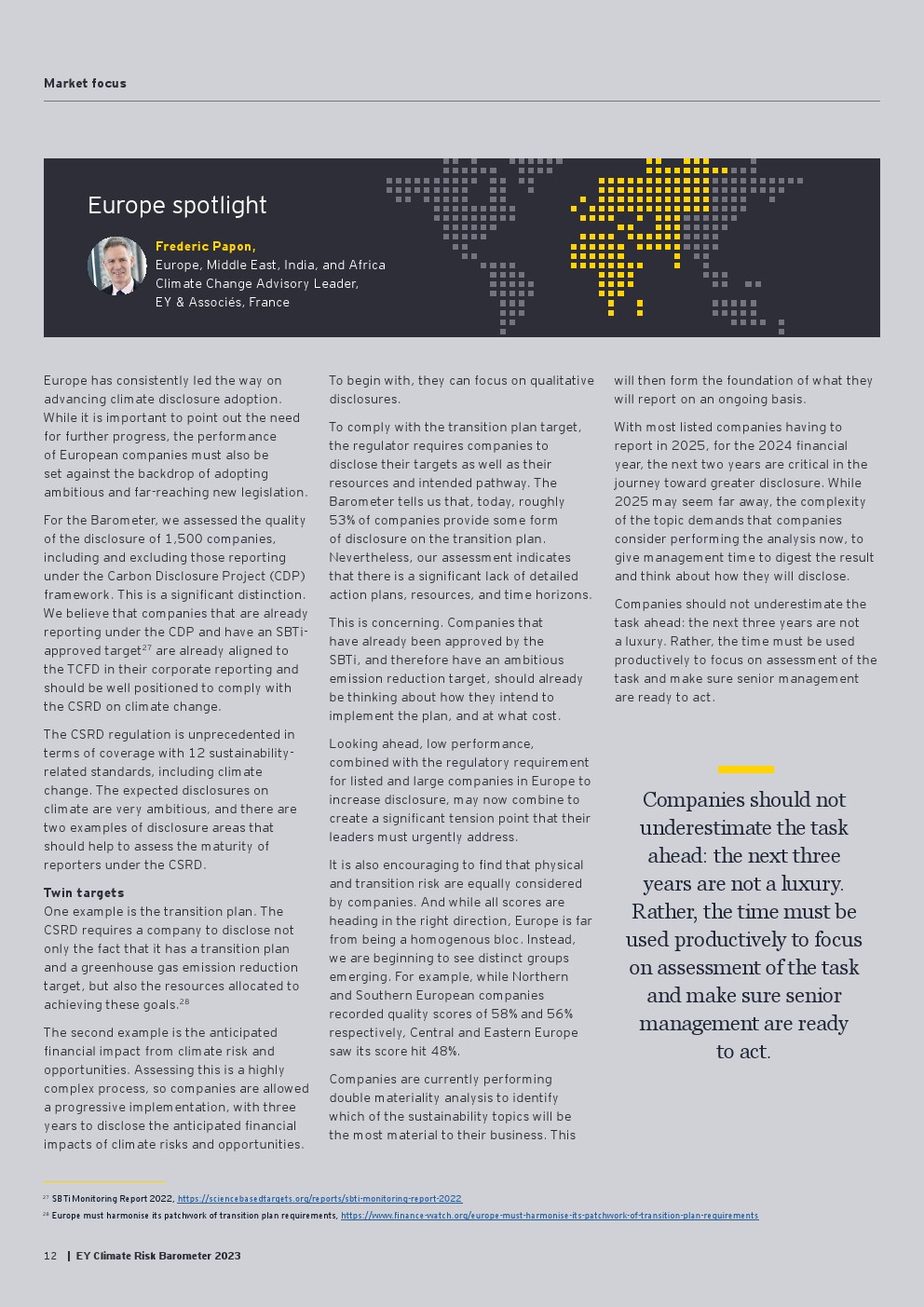 从负担到行动的心态转变:在表现最好的公司中,信息披露被用来推动行为和行动,将气候风险合规视为一个可行的机会。