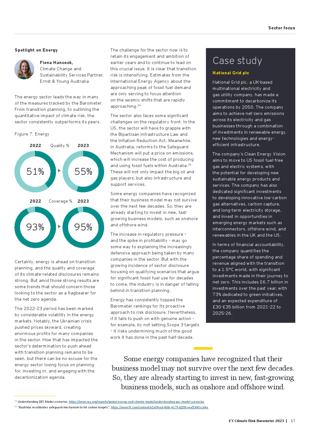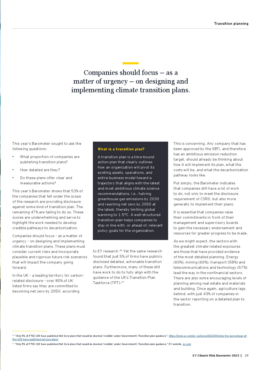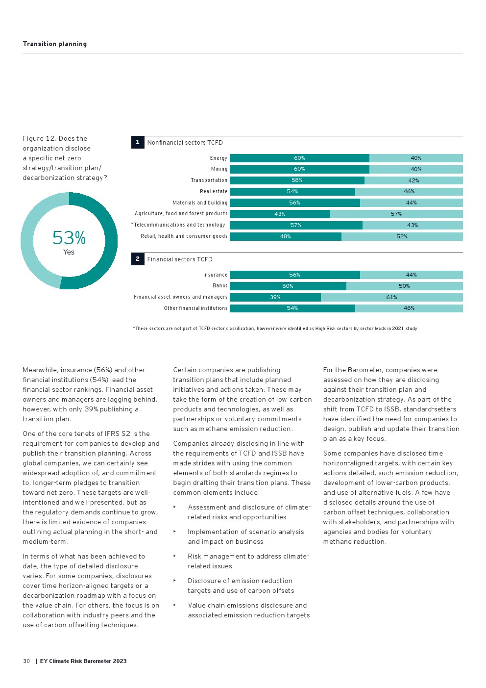 需要进行过渡规划方面的工作;近一半的受访公司(47%)没有披露他们计划如何调整其商业模式和运营,以符合最新的气候建议。在那些披露计划的公司中(53%),详细程度仍然有限。