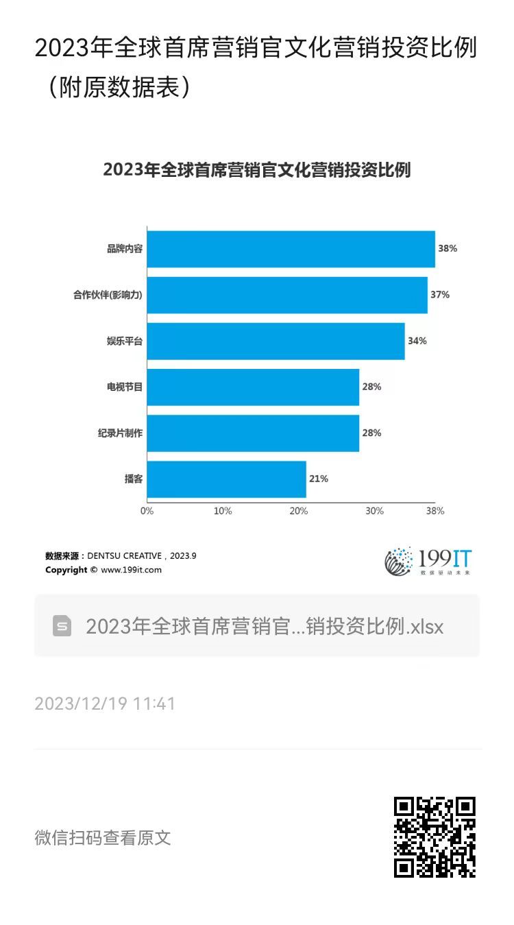 2023年全球首席营销官文化营销投资比例(附原数据表) ​​​