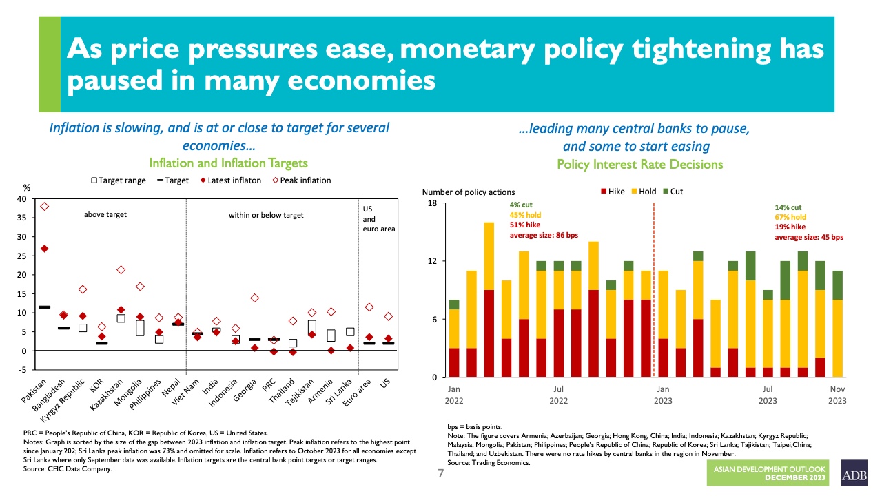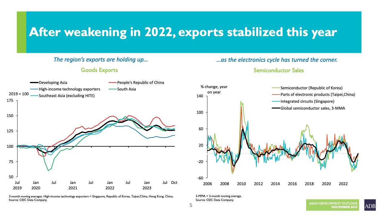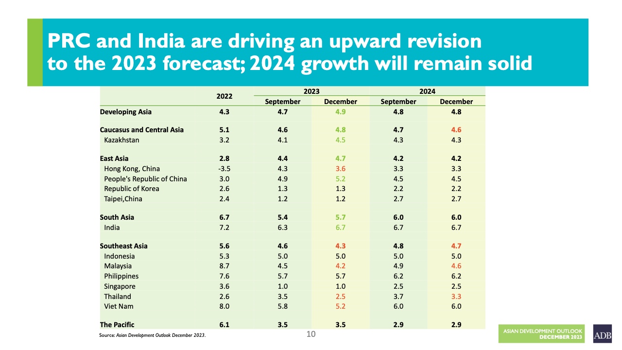 根据近日发布的《2023年亚洲发展展望(12月版)》报告,预计亚太地区发展中经济体今年将增长4.9%,而此前9月份预测值为4.7%。维持明年4.8%的增长预测不变。