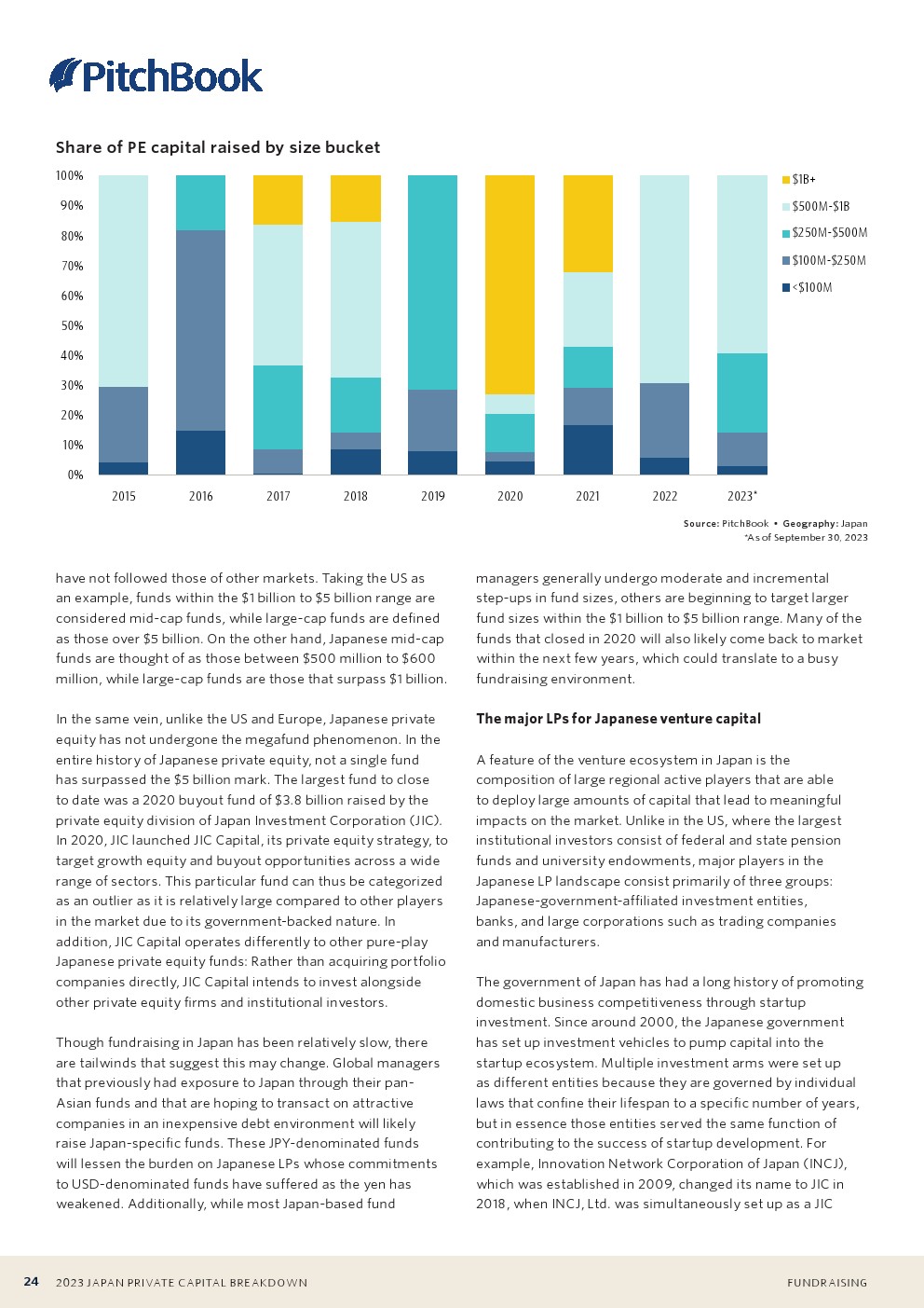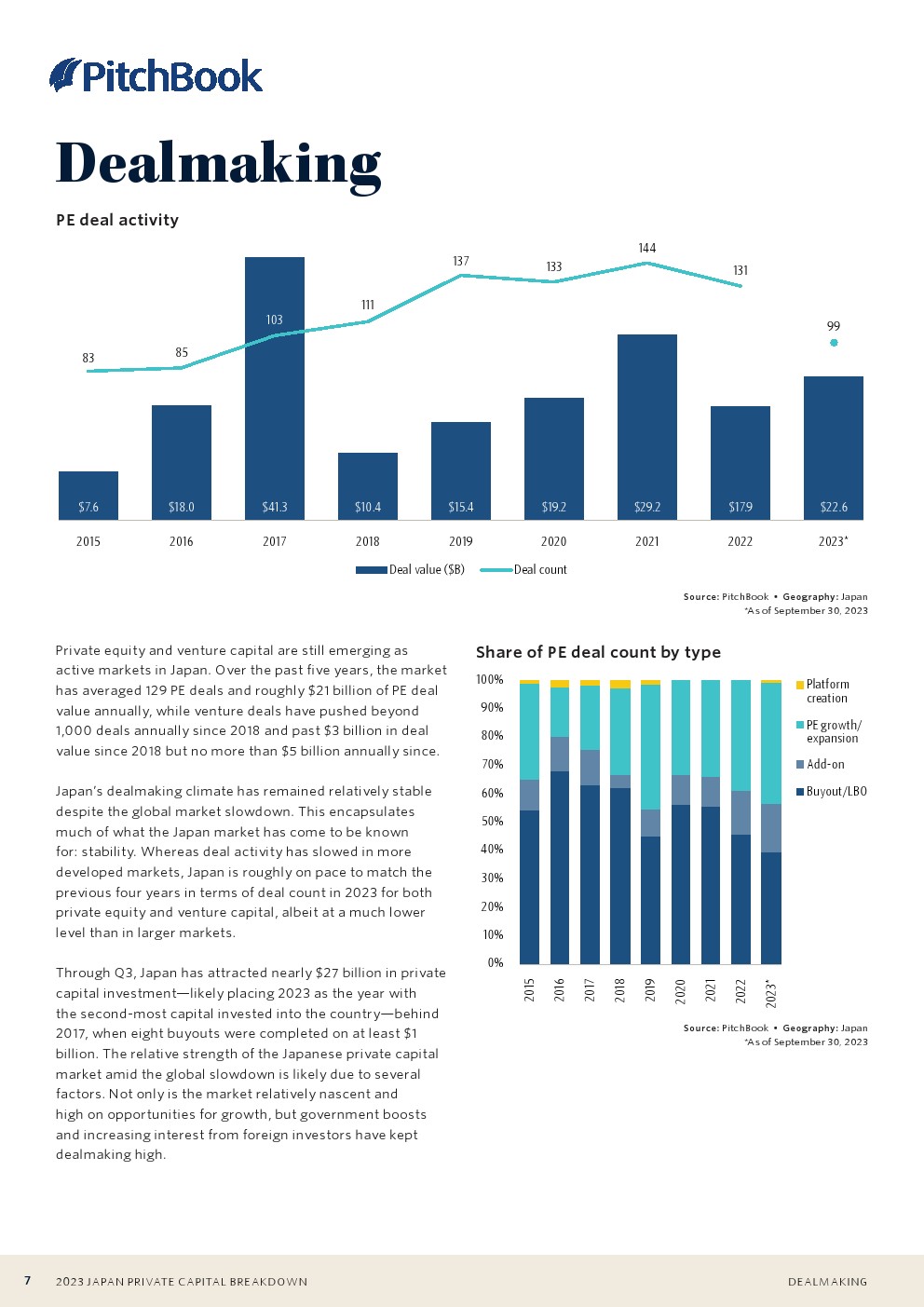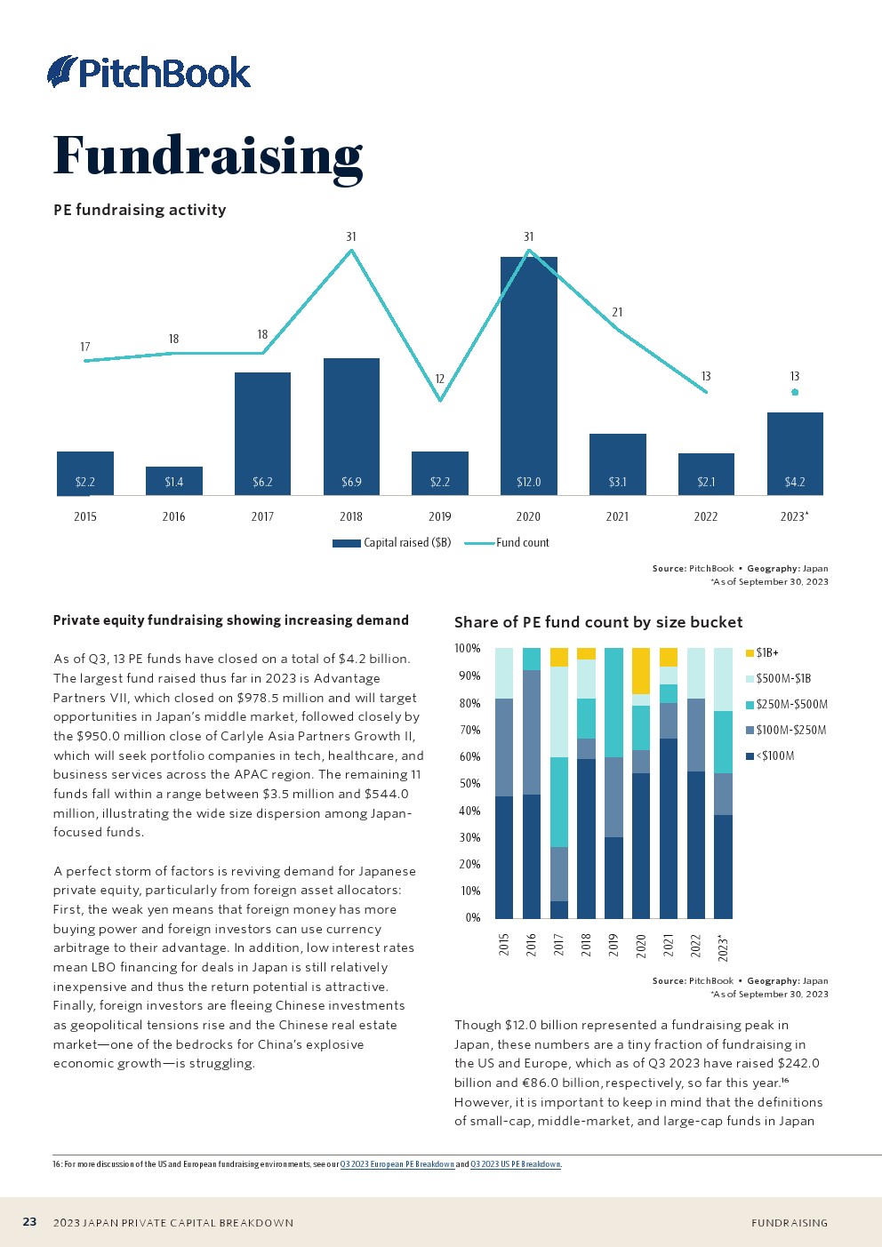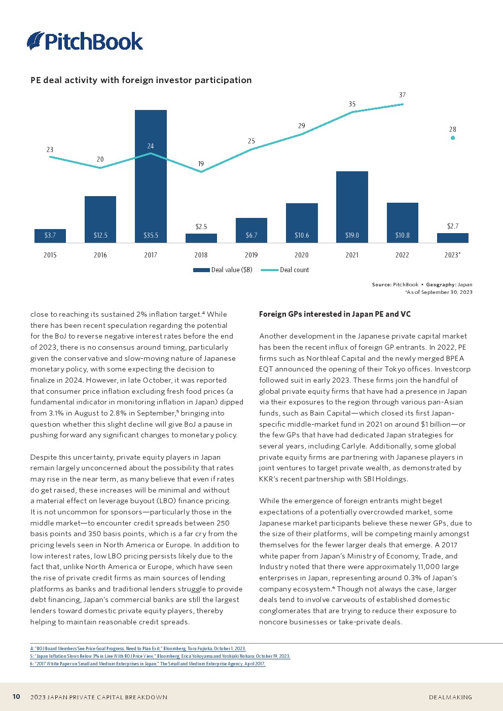 东芝于2023年完成的私有化收购是日本有史以来规模最大的私募股权交易之一。这笔交易接近150亿美元,约占今年私募股权交易总额的65%。第三季度的第二大交易仅为3亿美元。