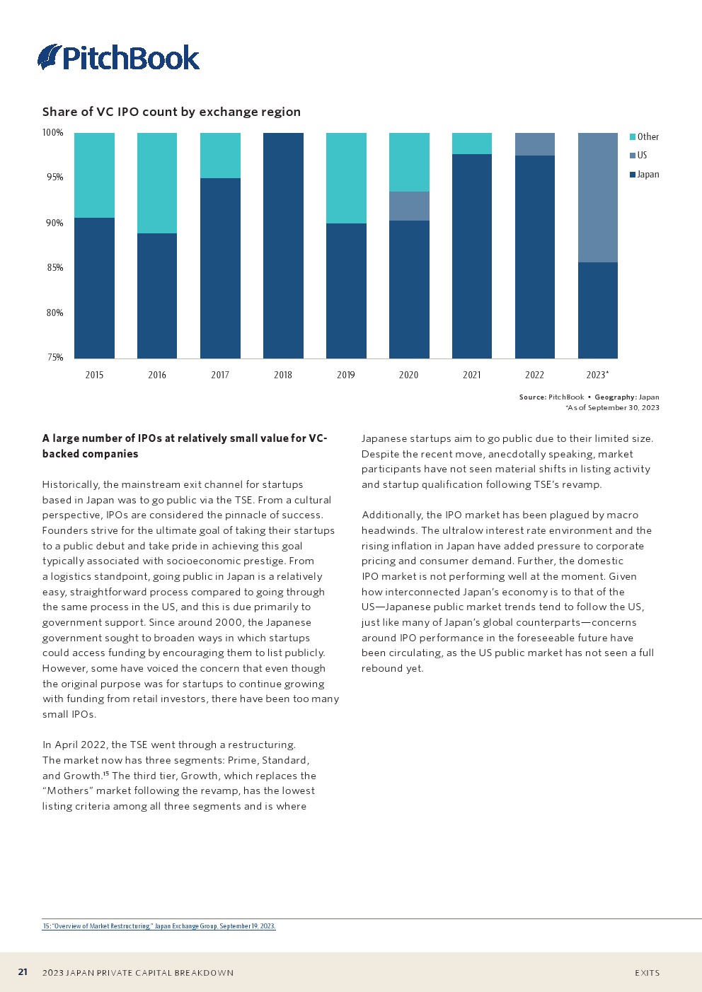 在东京证券交易所上市一直是日本初创企业的主流退出渠道。近年来,日本有很多IPO,尽管规模相对较小。
