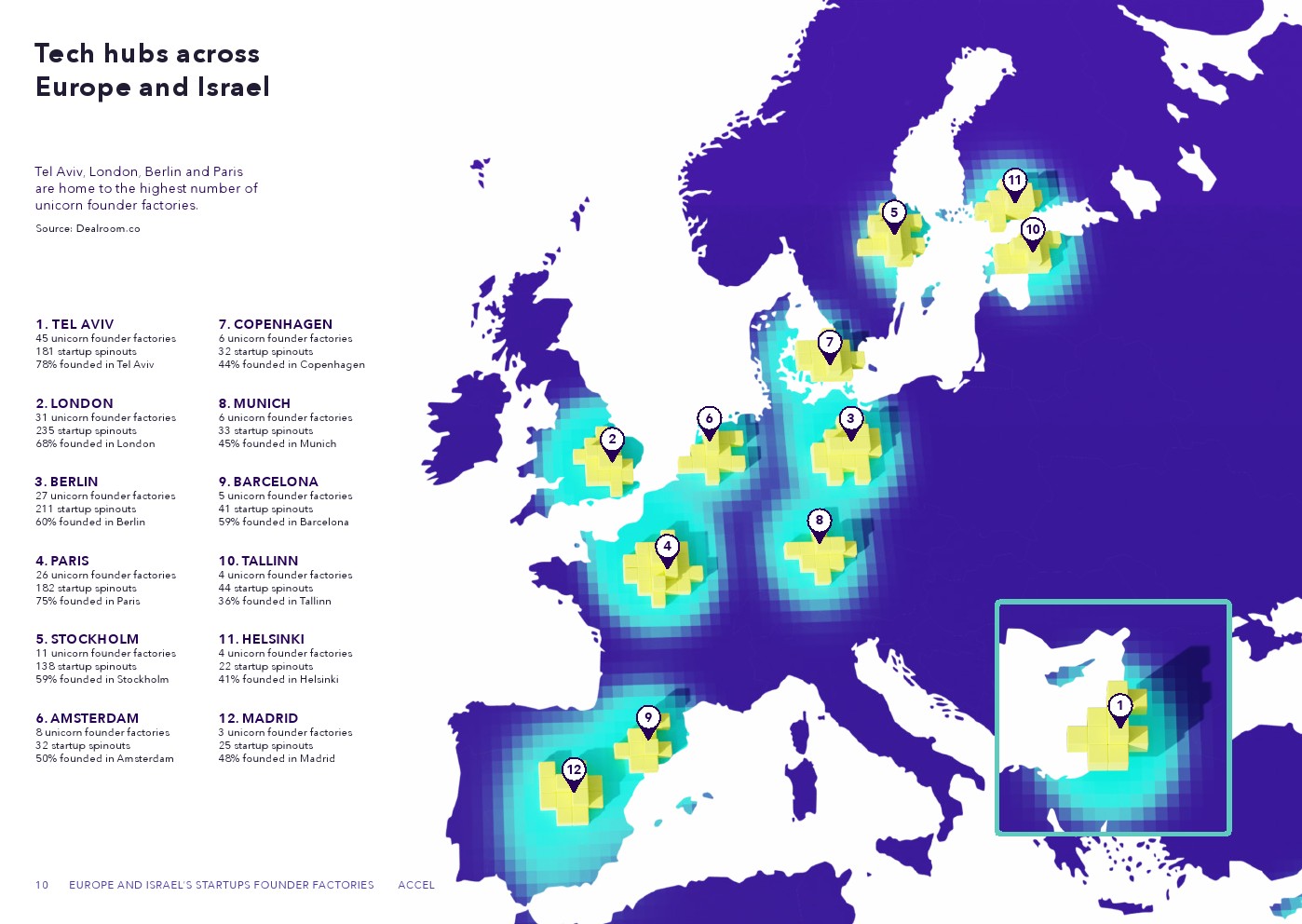 我们的数据显示了一个惊人的趋势:近1500家初创公司是从欧洲和以色列的独角兽公司中发展起来的,这再次表明它们仍然是蓬勃发展的创始人工厂。