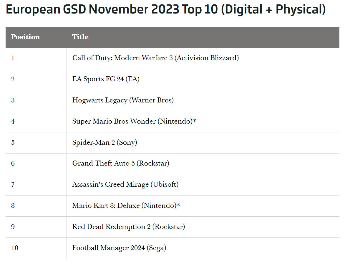 在《使命召唤》、《EA Sports FC 24》和PS5的推动下,欧洲11月份的电子游戏销售表现强劲。