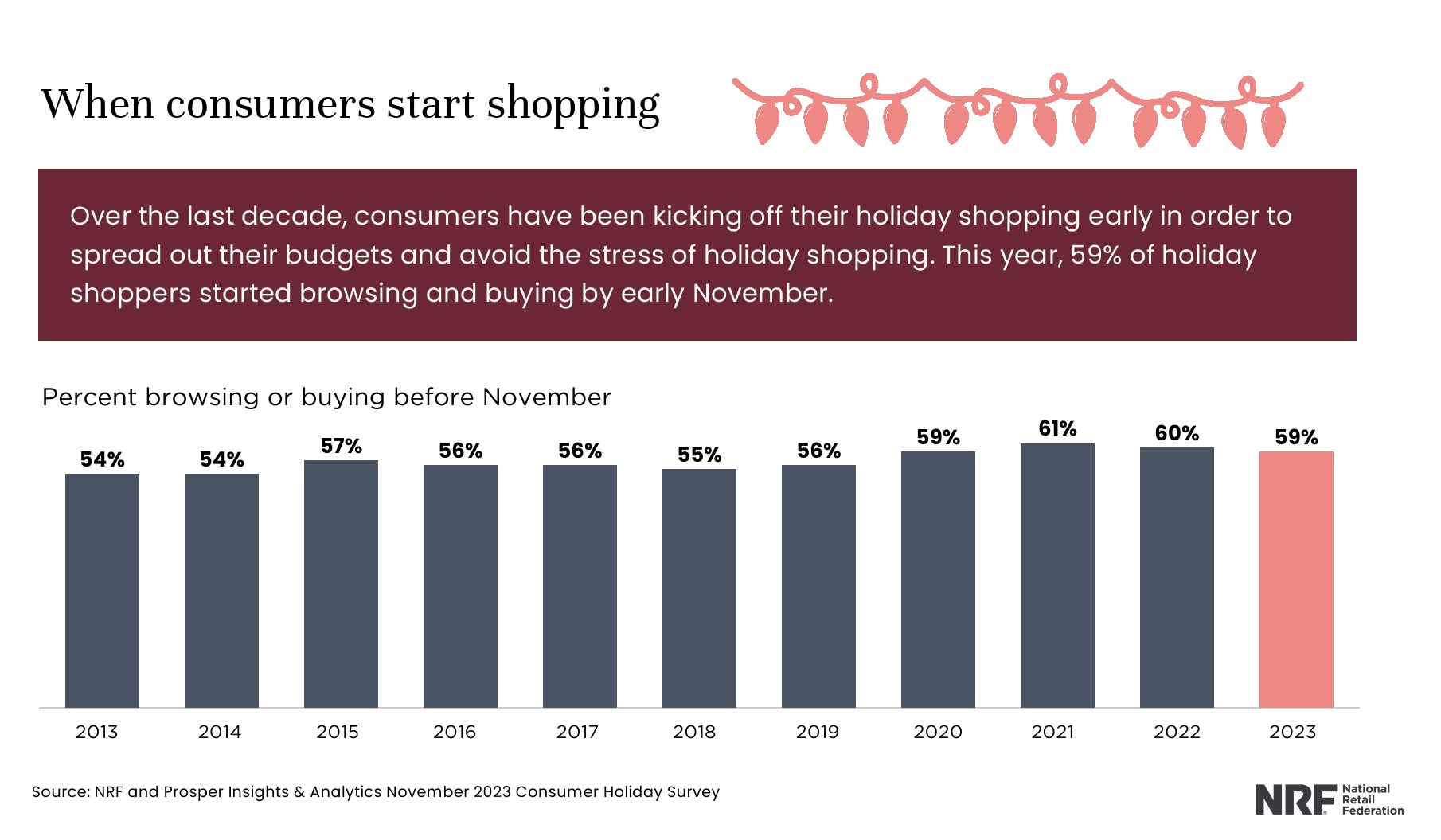 购物目的地的趋势仍在发展,58%的消费者计划在网上购物,其次是百货公司(49%)、折扣店(48%)、杂货店和超市(44%)。