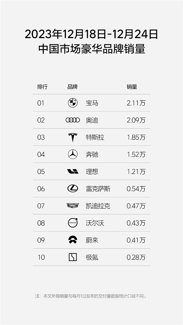 理想汽车还继续保持中国市场豪华品牌销量前五,销量已超过雷克萨斯、凯迪拉克等二线豪华品牌,是榜单中排名最高的中国品牌。