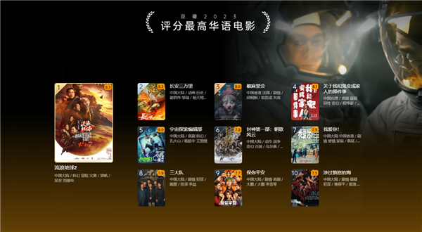 评分最高华语电影:《流浪地球 2》8.3