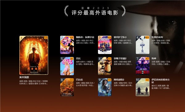 评分最高外语电影:《奥本海默》8.8
