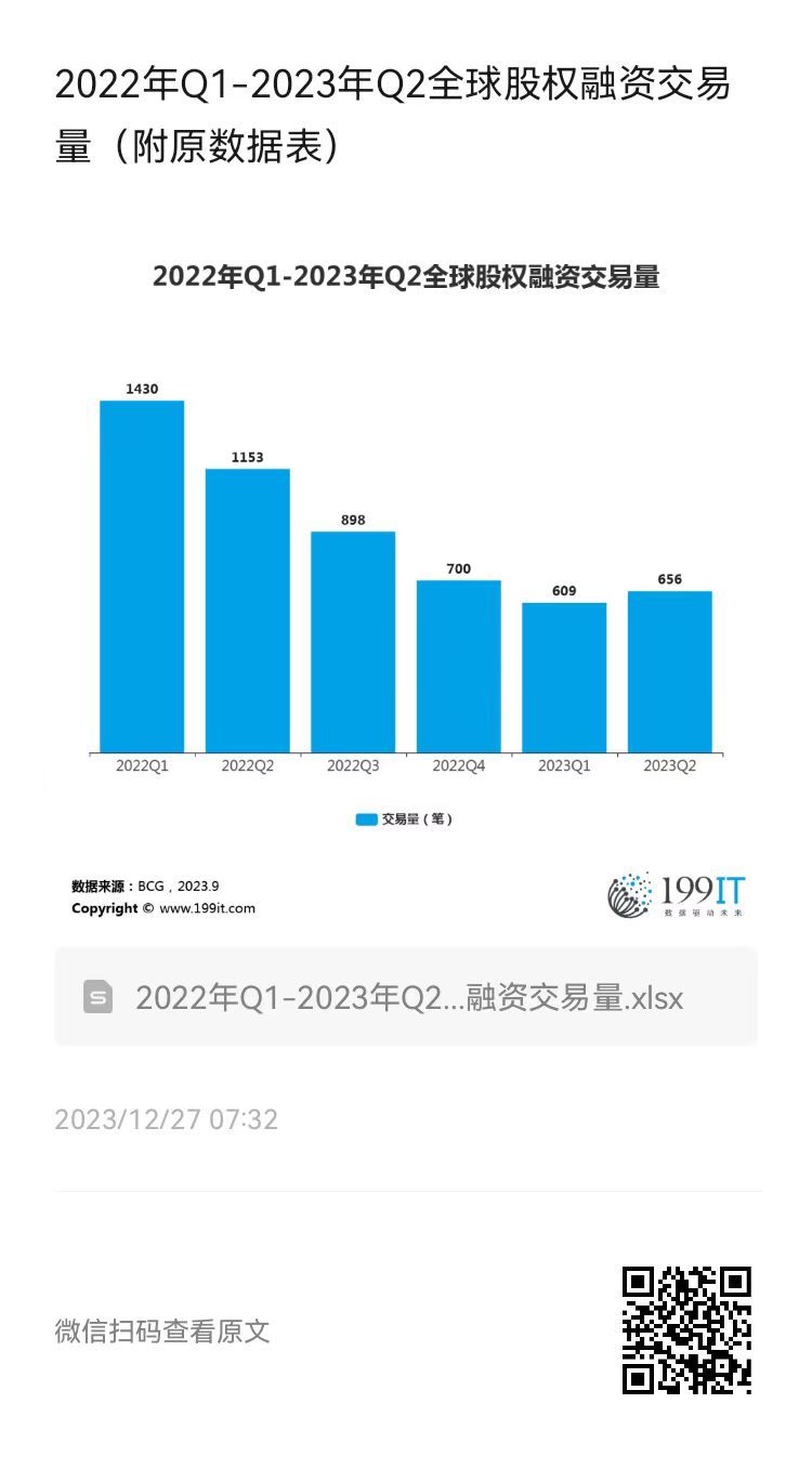 2022年Q1-2023年Q2全球股权融资交易量(附原数据表) ​​​