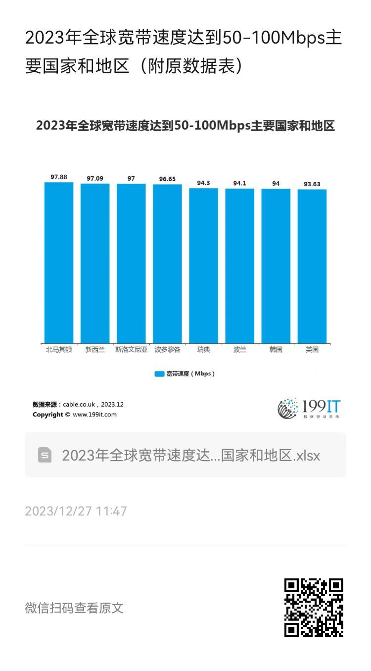 - 2023年全球宽带速度达到100-200Mbps主要国家和地区(附原数据表)