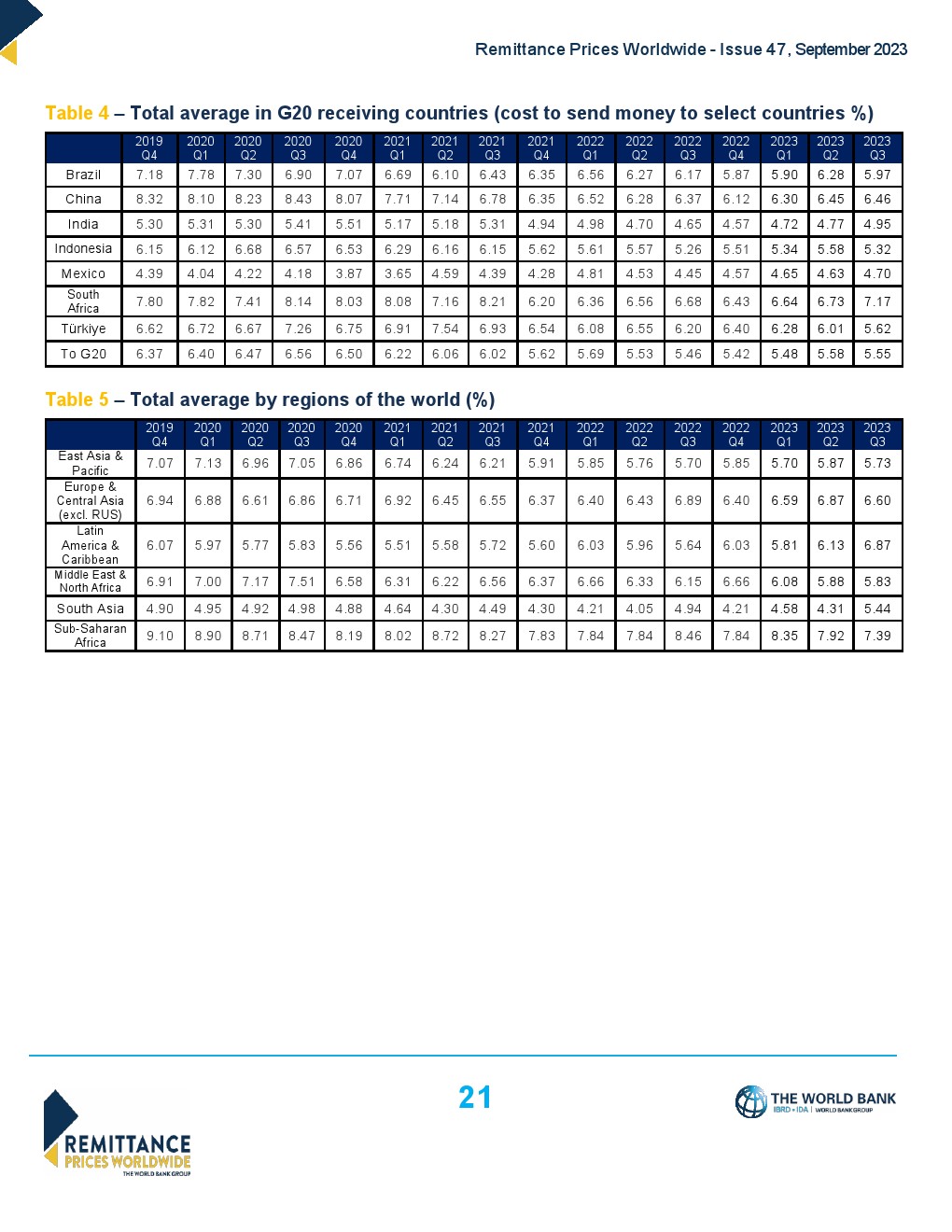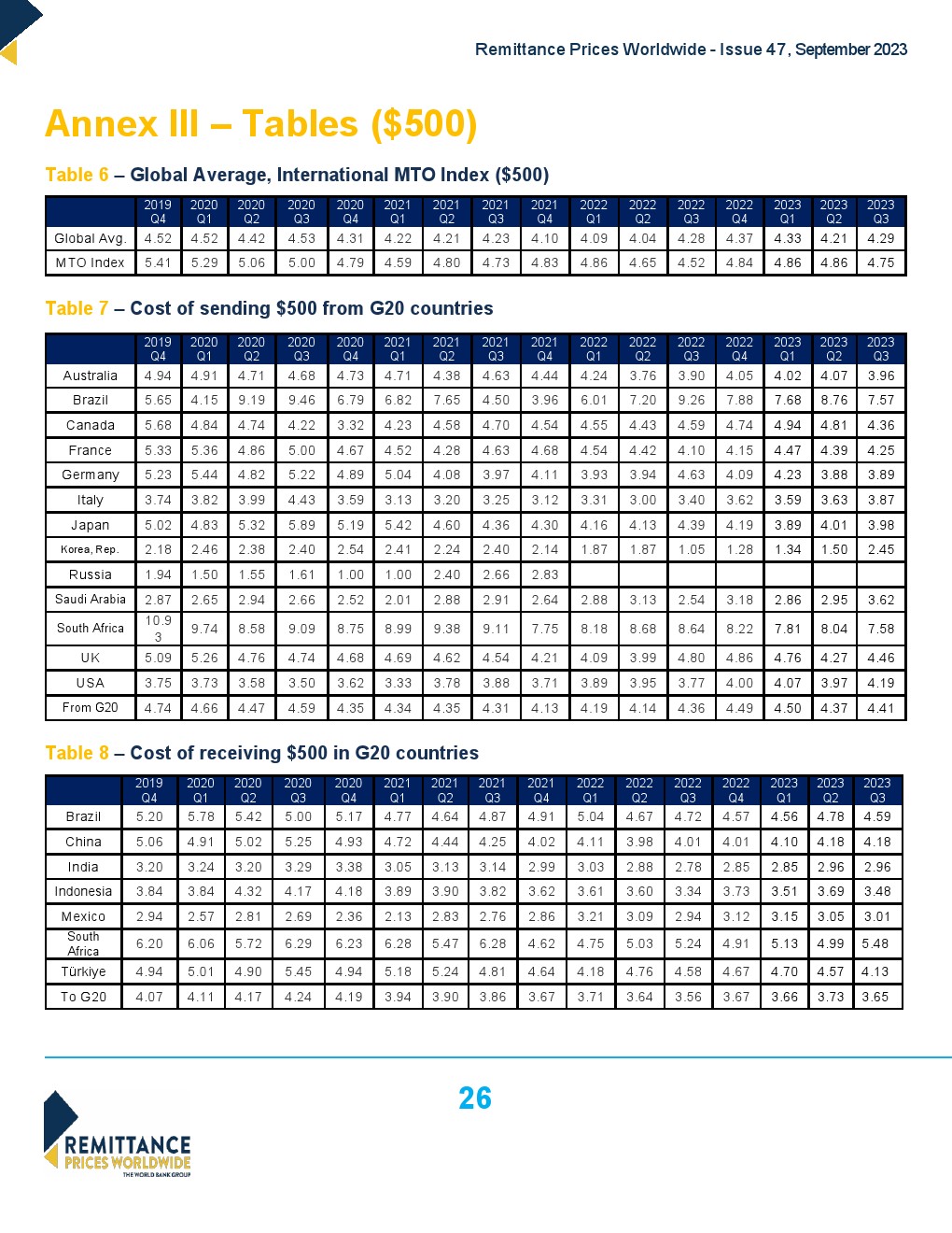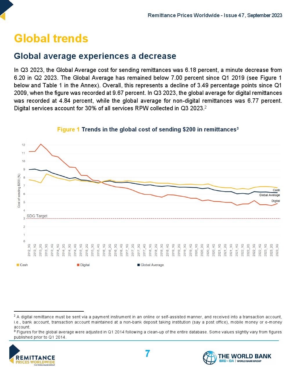 世界银行发布了“2023年第三季度全球汇款成本”,全球平均水平从2023年第二季度的6.2%下降到2023年第三季度的6.18%。