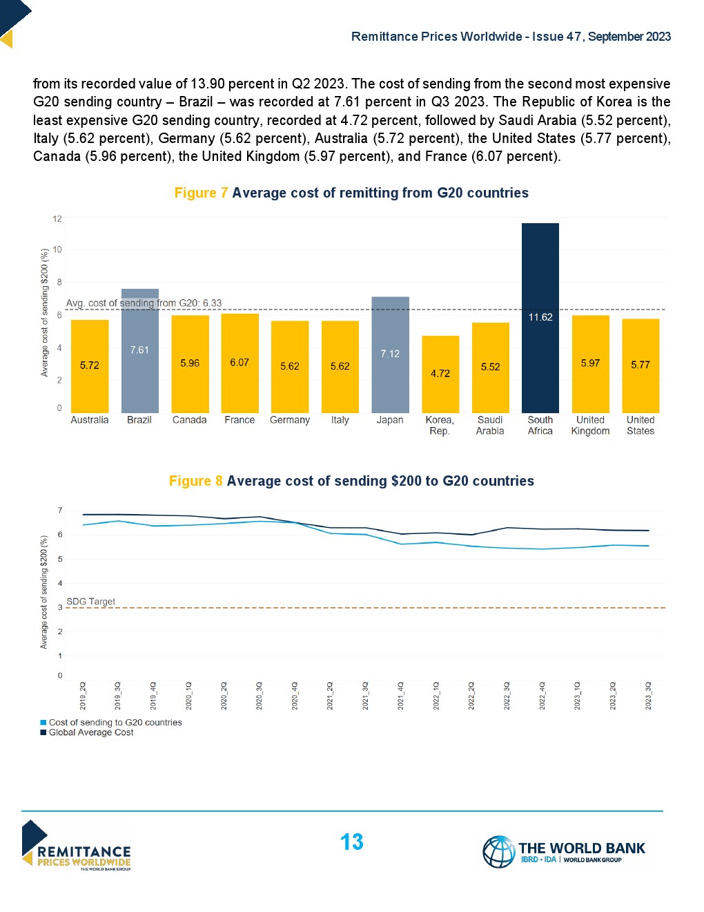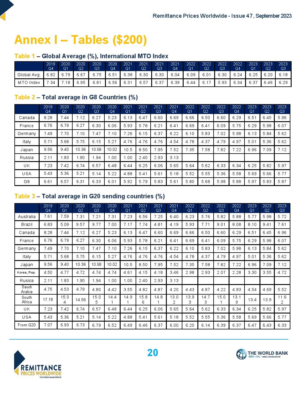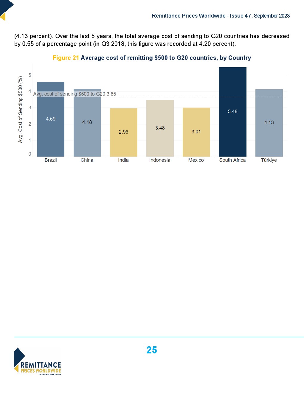 世界银行发布了“2023年第三季度全球汇款成本”,全球平均水平从2023年第二季度的6.2%下降到2023年第三季度的6.18%。