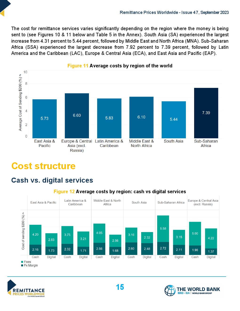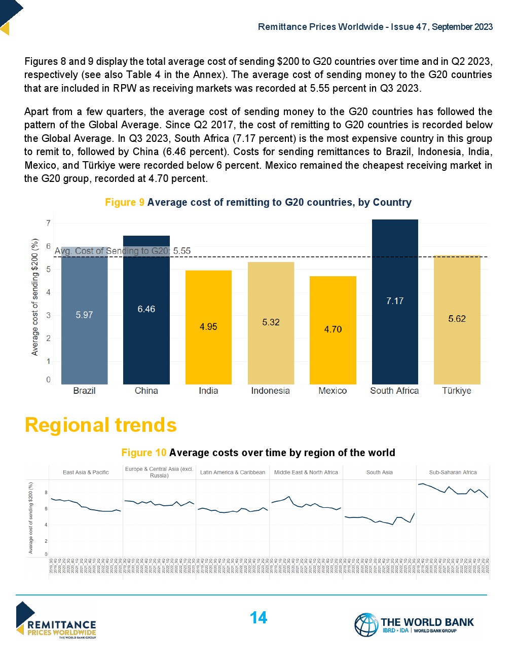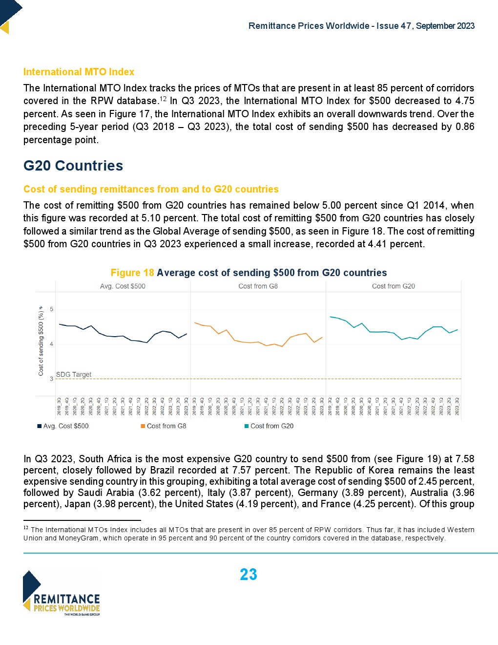 南亚仍然是成本最低的接收地区,平均成本为5.44%。撒哈拉以南非洲仍然是汇款成本最高的地区,2023年第三季度的汇款成本占7.39%。