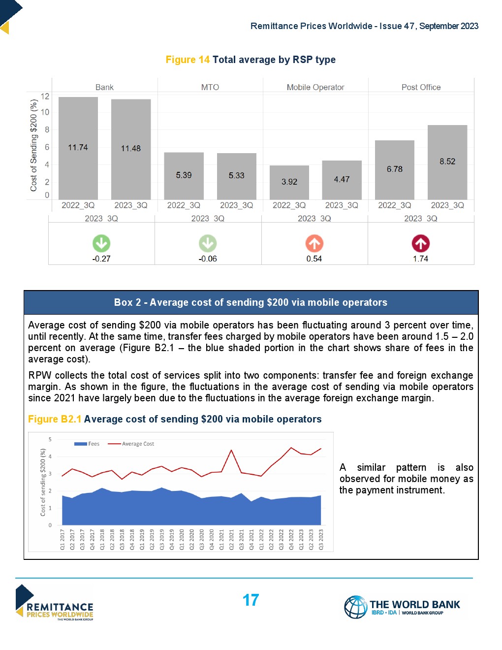 2023年第三季度,移动货币仍然是发起汇款成本最低的工具,也是接收汇款成本最低的工具。