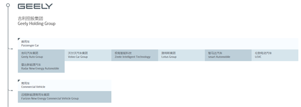 还包括沃尔沃、极氪、路特斯、智马达、伦敦电动汽车、雷达新能源汽车,此外还有商用车公司(远程新能源商用车集团)。