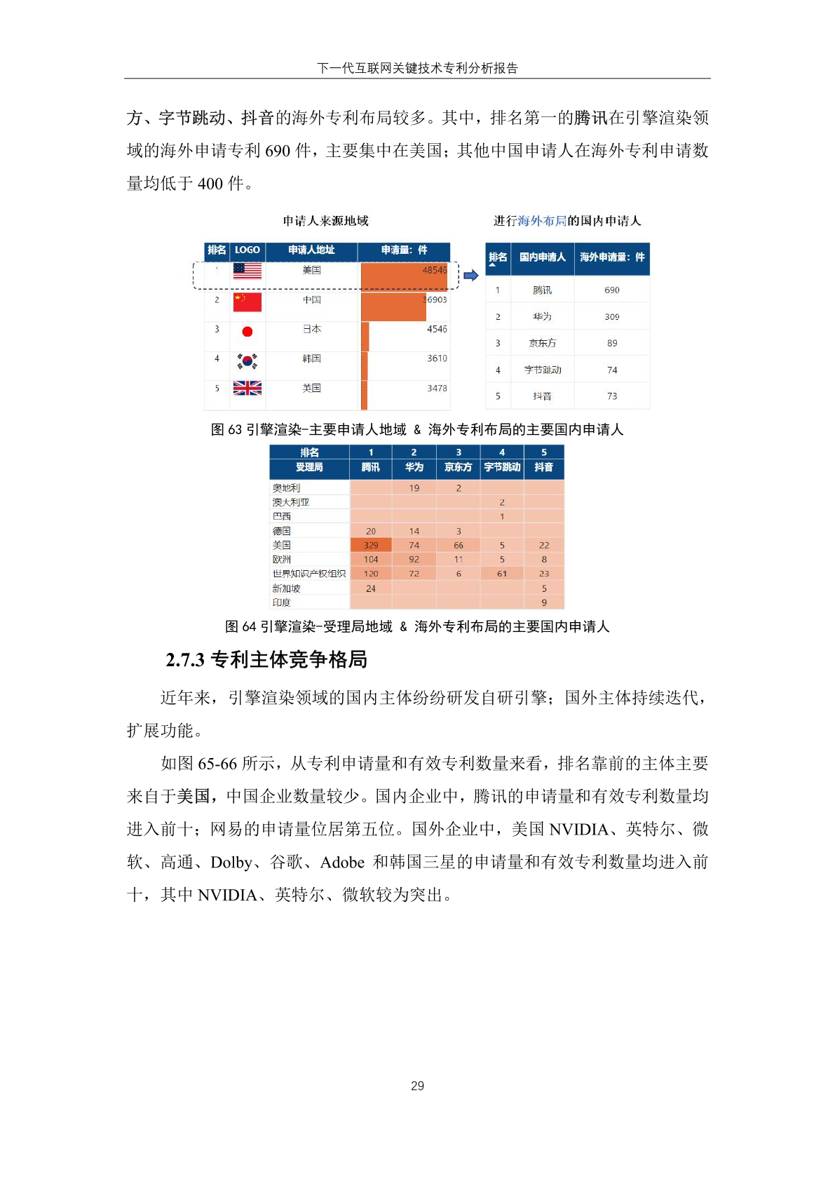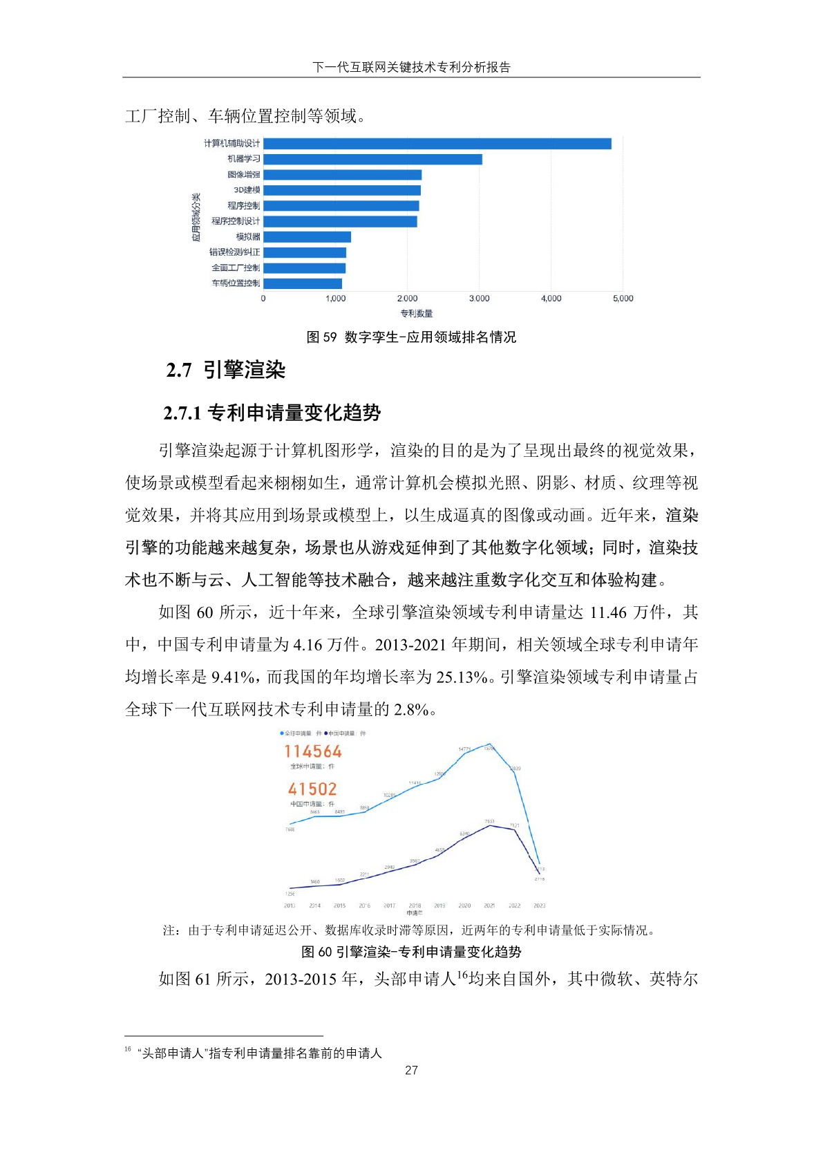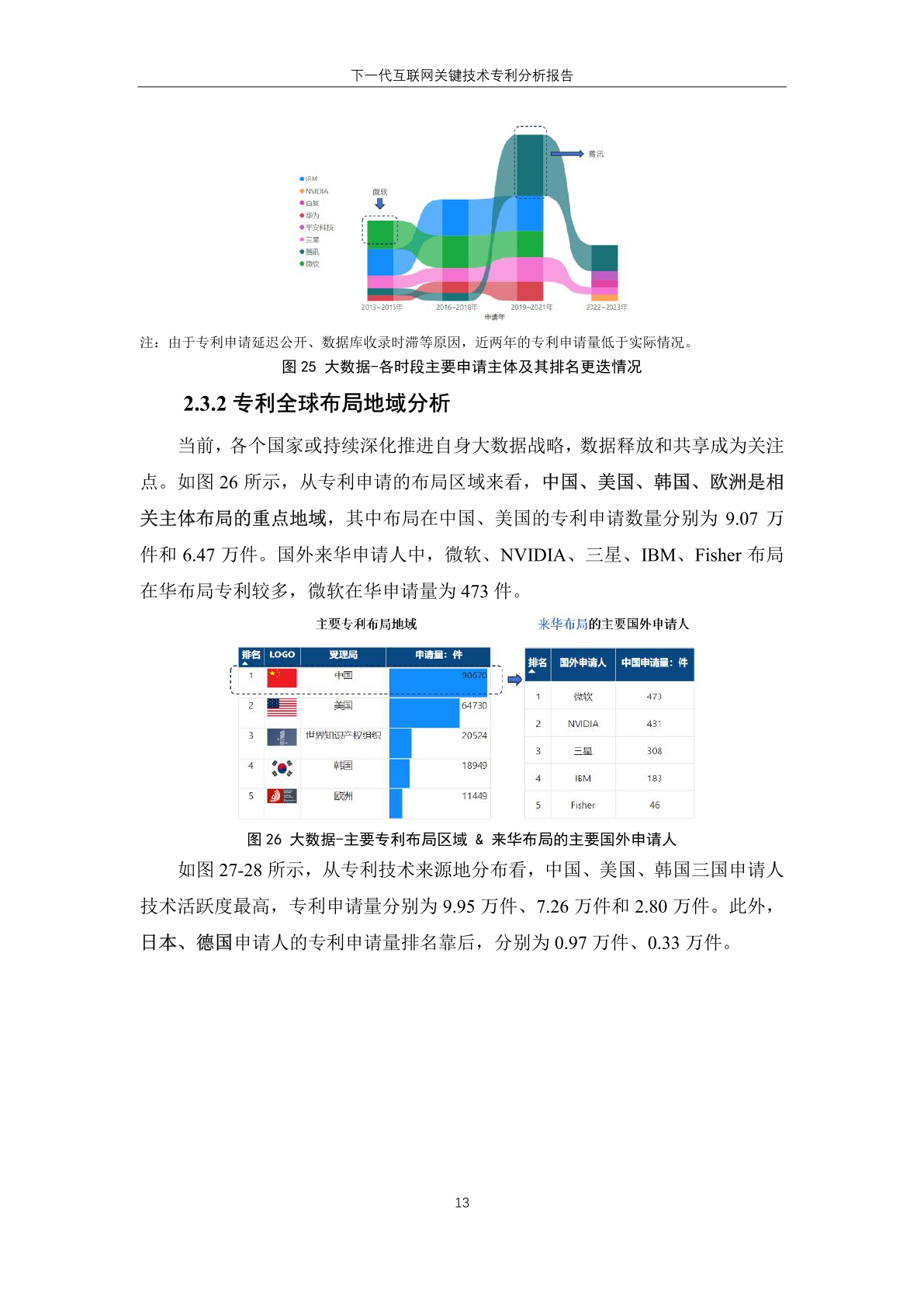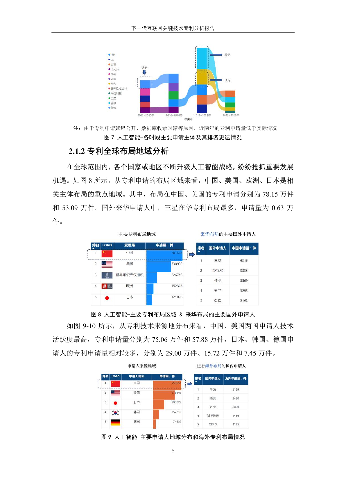 下一代互联网技术的 专 利 技 术 来 源 地 主要集中于中国和 美 国,其中,专利申请量分别为 164.74 万 件和 116.86 万件;美国申请主体全球专 利申请数量高于本国受理专利数量,反 映其本土申请人在域外国家布局专利趋 势明显。