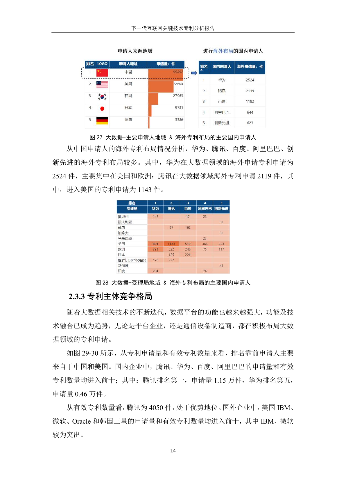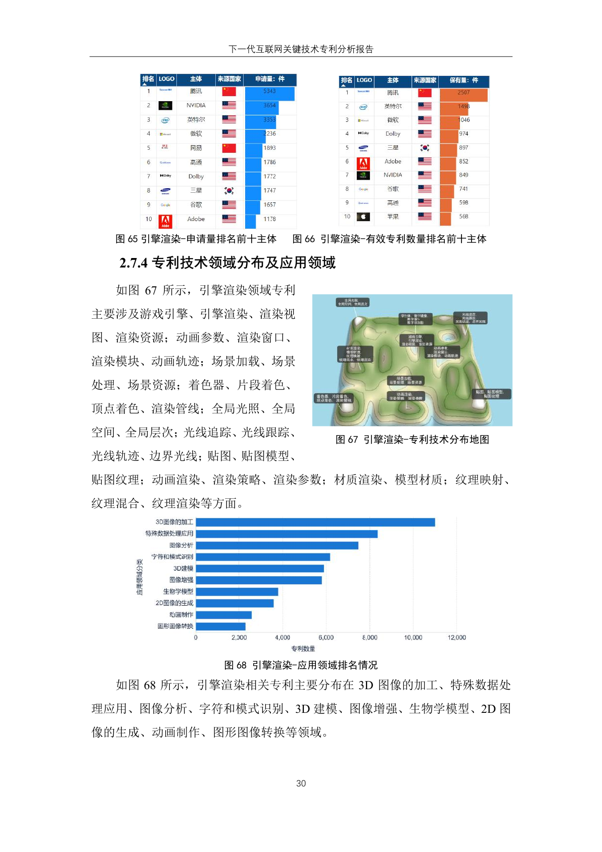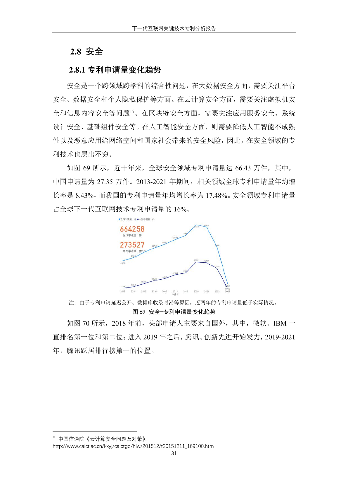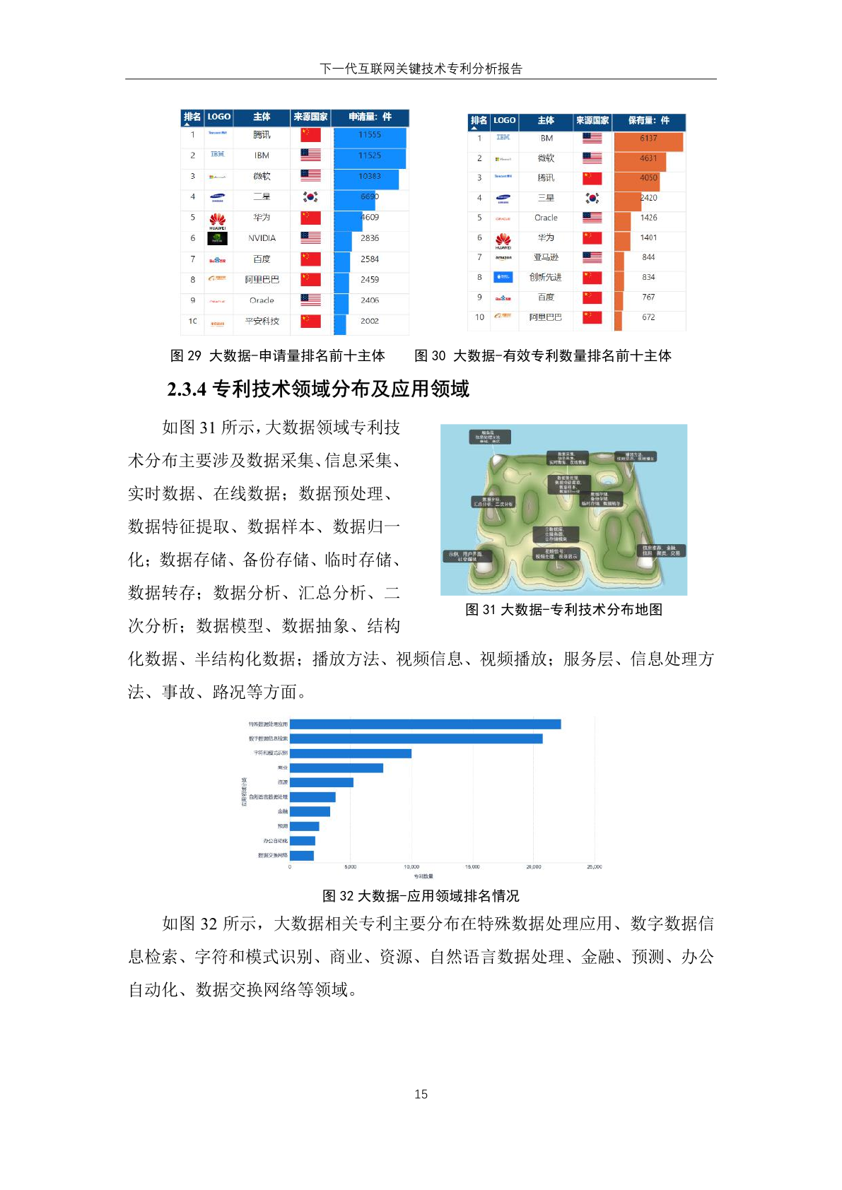 国内主体中,腾讯、华为、创新先进三家企业进入有效专利数量排名榜单,分 别位居第一位、第六位和第十位。其中, 创新先进为蚂蚁集团子公司,曾大量受让 集团专利,而 华为作为全球领先的信息与 通信技术解决方案供应商,在下一代互联 网技术领域专利有效量也排名靠前。