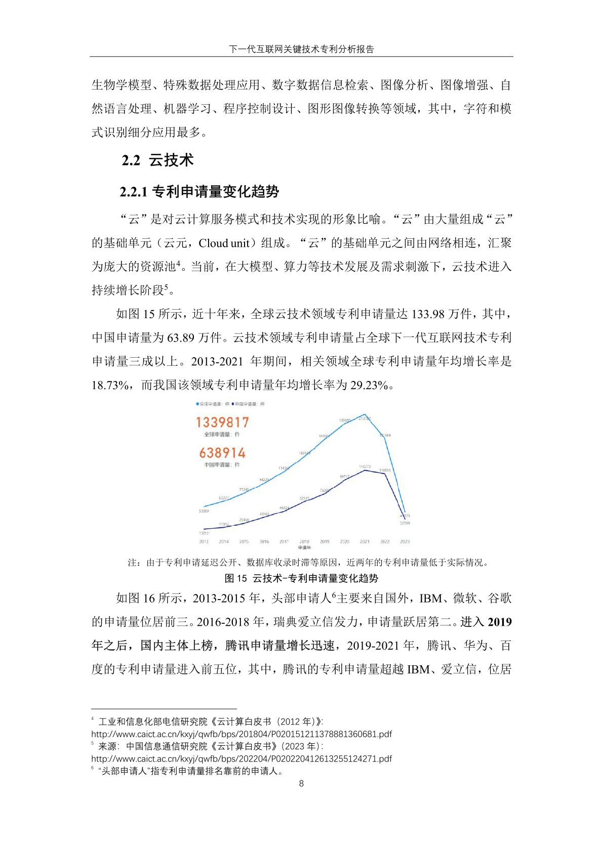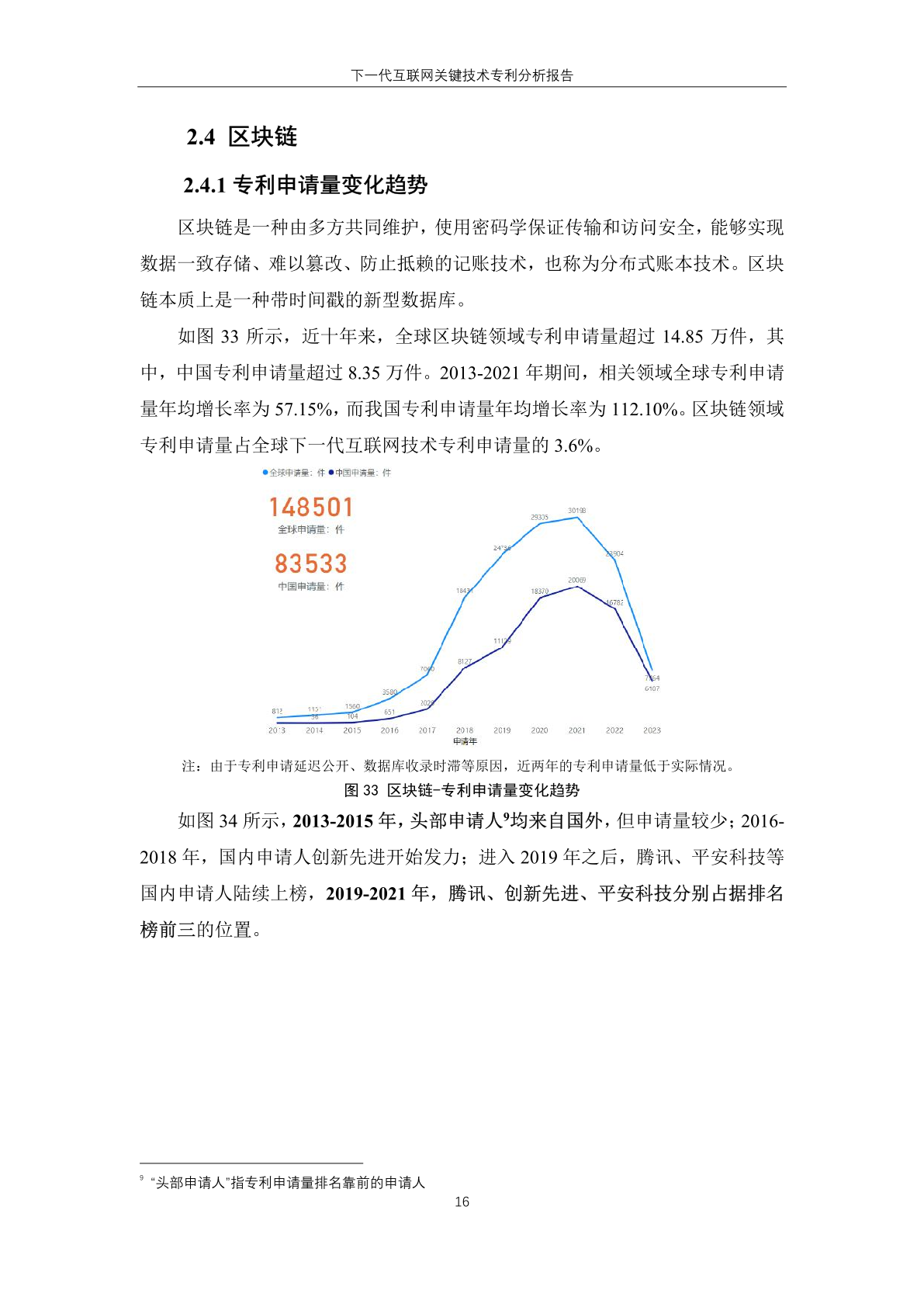从整体趋势看,全球和中国专利申请量均呈现增长态势。2013-2021 年,相 关领域全球专利申请量年均增长率为 11.53%,中国专利申请量年均增长率为 25.11%。中国年均增长率是全球年均增率两倍以上。