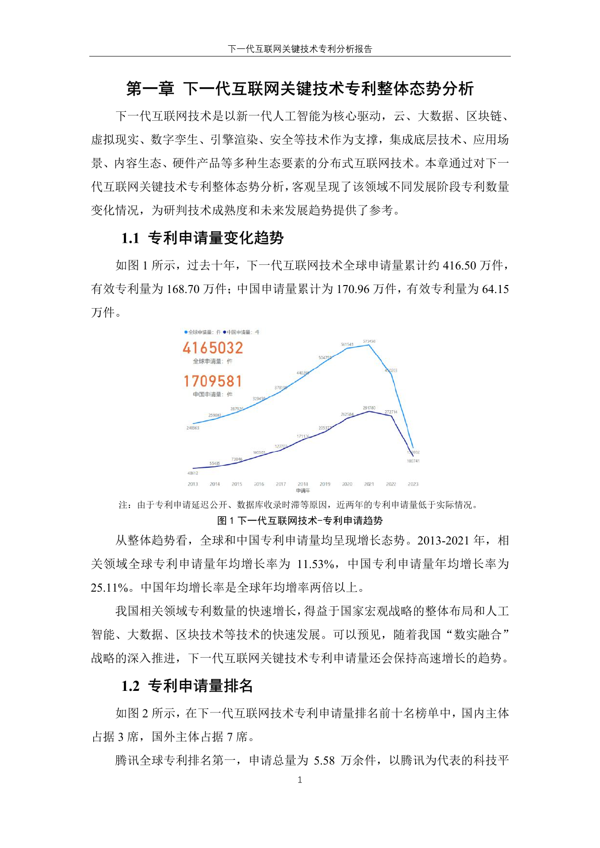 过去十年,下一代互联网技术全球申请量累计约 416.50 万件, 有效专利量为 168.70 万件;中国申请量累计为 170.96 万件,有效专利量为 64.15 万件。