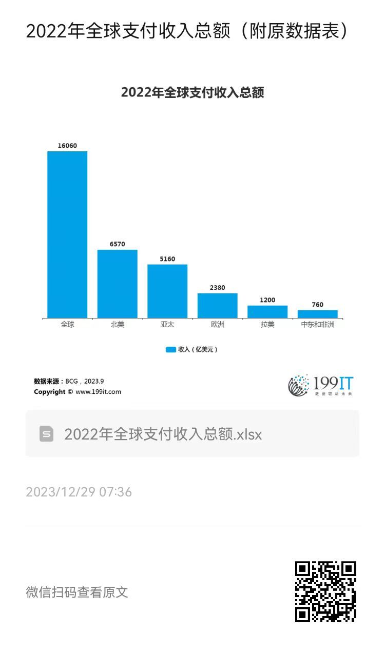 2022年全球支付收入总额(附原数据表) ​​​
