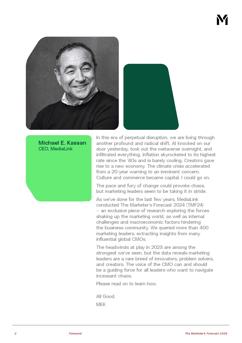 调查发现,营销人员对“全新的、激进的未来”的准备程度已经从2022年的70%和2021年的71%下降到今年的44%。他们并不孤单;只有42%的CEO对公司未来一年的前景充满信心。