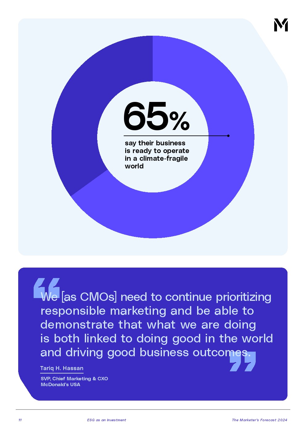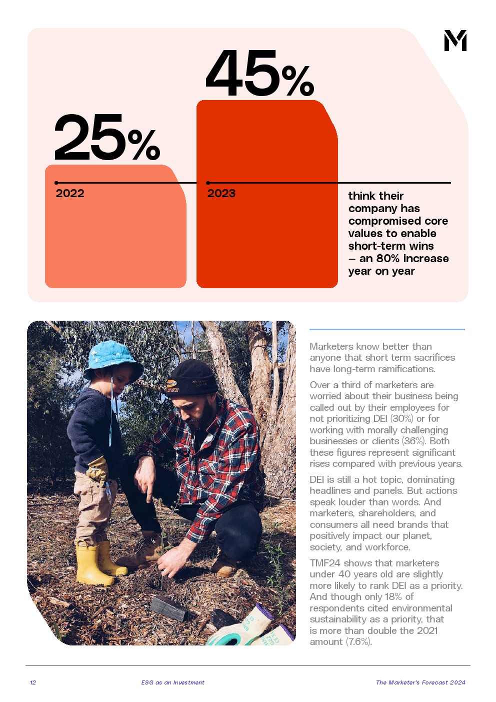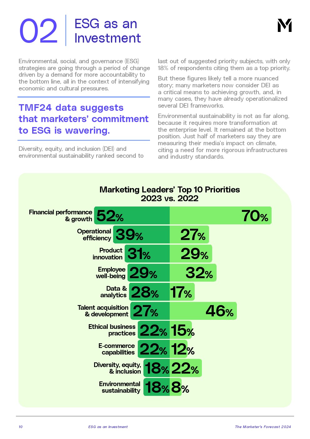 实现ESG目标不是一蹴而就的。只有18%的受访者将多样性、公平、包容性和环境可持续性作为首要任务。营销领导者必须继续展示这些投资对业务成果产生的积极影响。