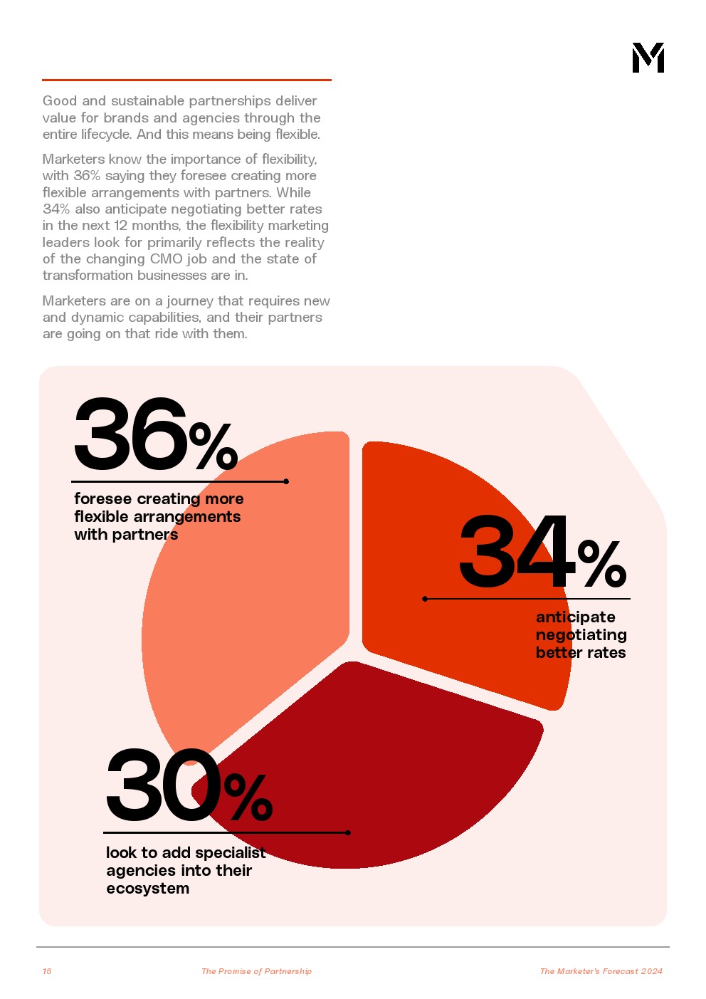 代理商和品牌之间的合作关系需要重新构想。36%的受访者预计将与合作伙伴建立更灵活的关系。此外,30%的人希望增加专业机构合作伙伴。