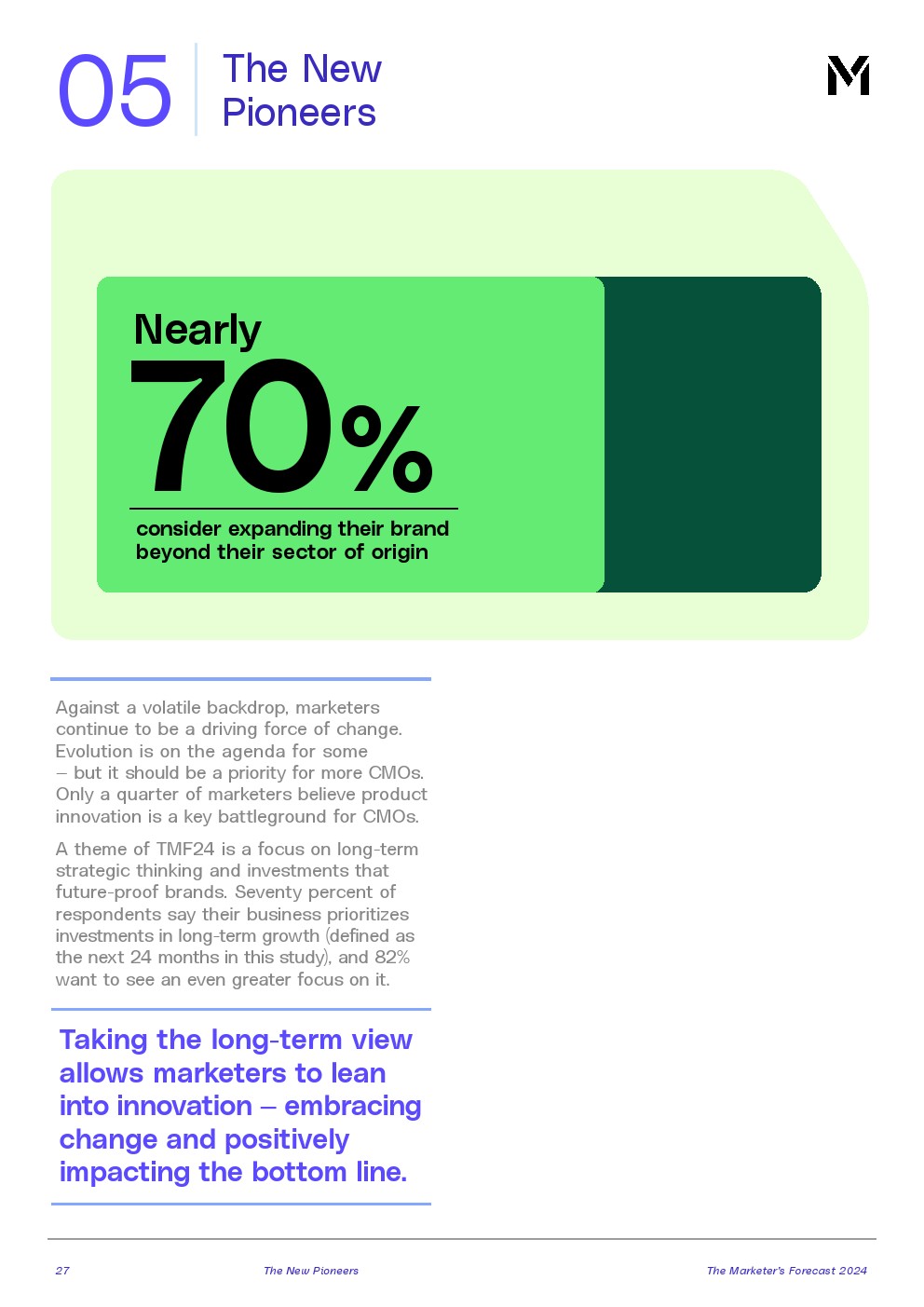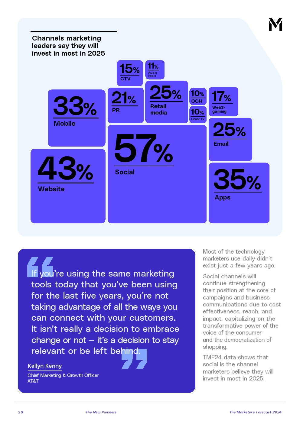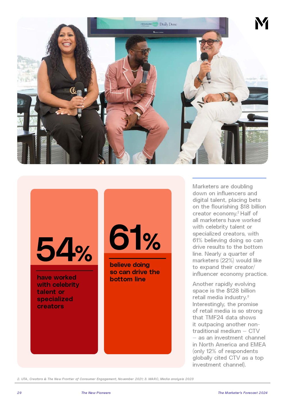 从想要将品牌扩展到其所在行业之外(70%),到押注于与创作者进行非传统的互动(52%),再到开拓零售媒体新渠道(24%),营销领导者正在开拓新的收入动力。