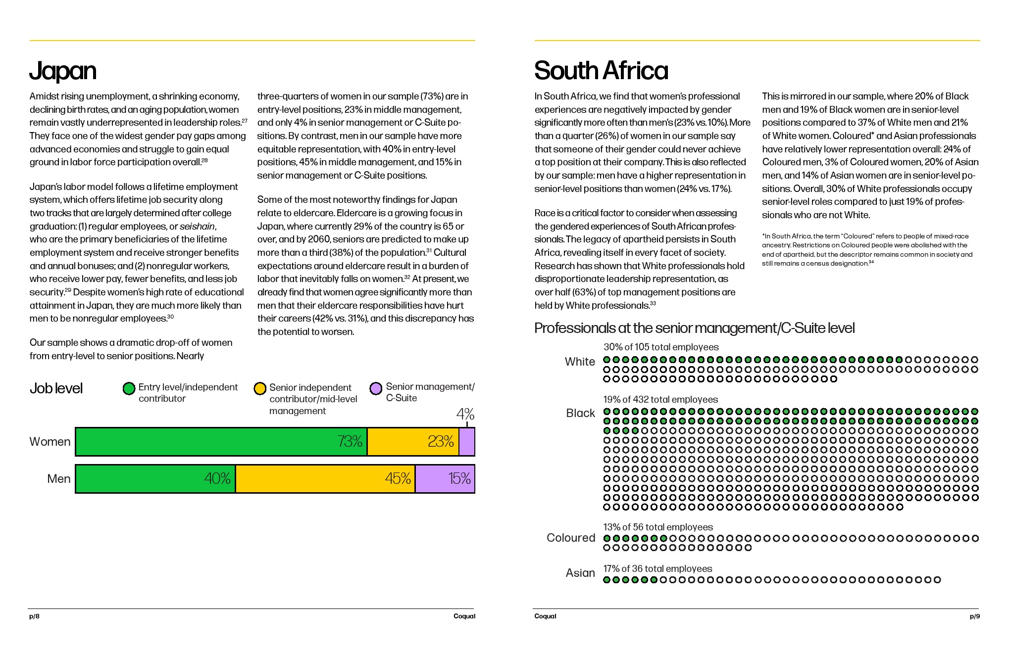 自Coqual开始研究职场性别不平等现象以来的近20年里,大量报告都表明,女性寻求平等地位是多么具有挑战性。虽然有些情况确实有所好转,但本报告中的数据有助于理解世界各地仍然存在的持续不平等模式。Coqual批判性地探讨了澳大利亚、巴西、德国、印度、日本、南非、英国和美国职场的性别差异,这些国家都有性别不平等的共同特征,但在背景细微差别方面有所不同。