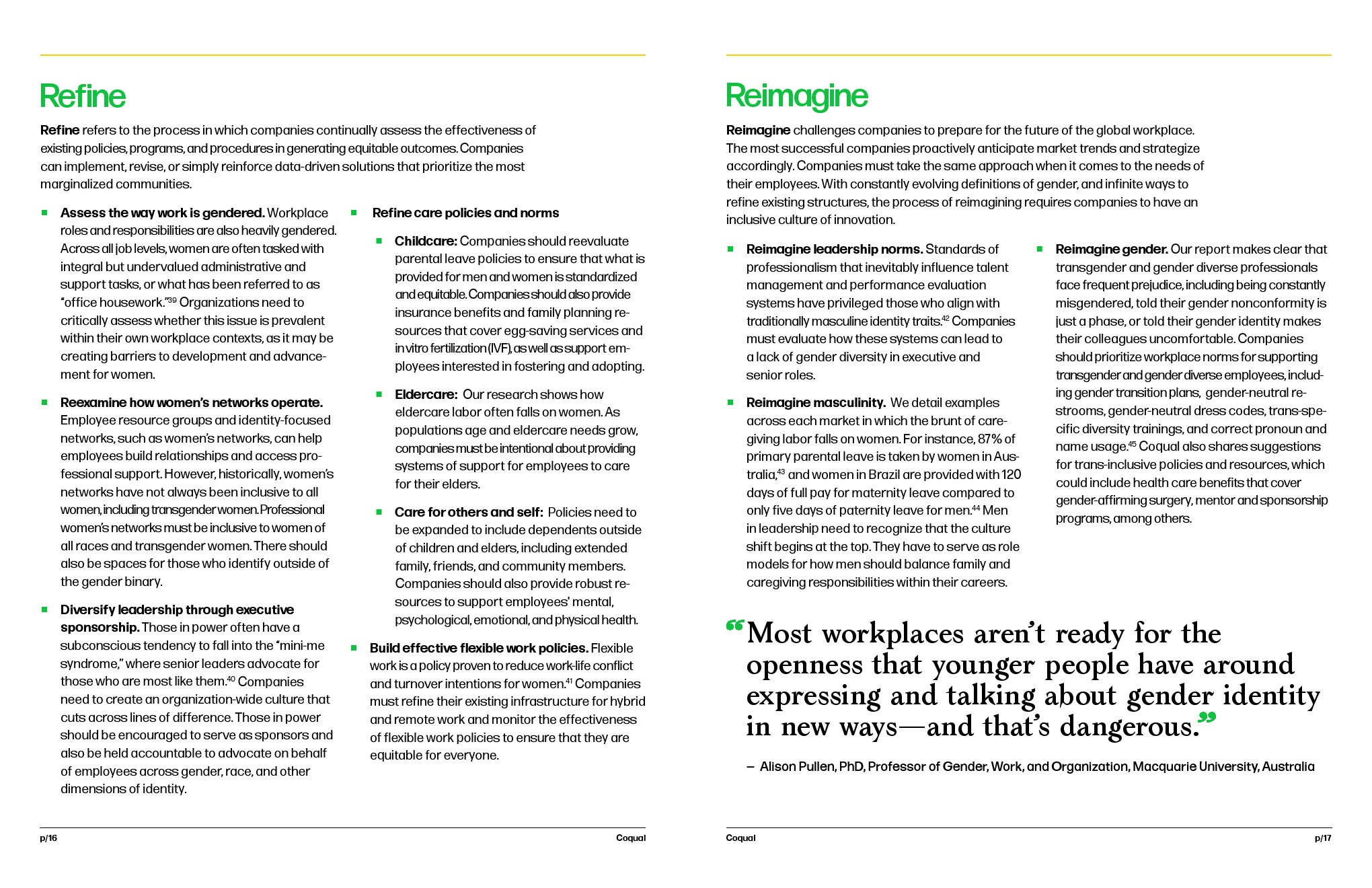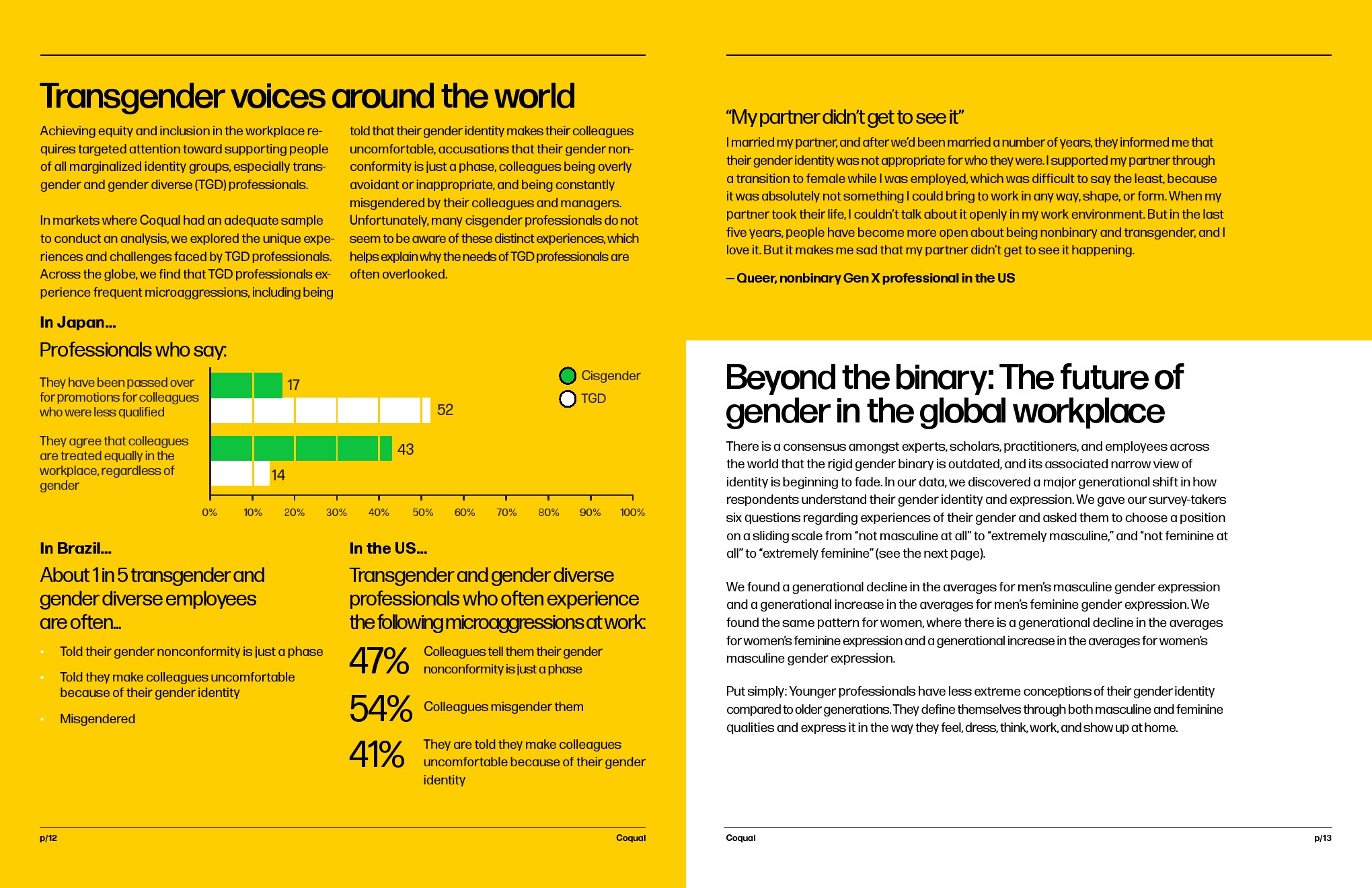 然后,我们邀请受访者通过探索超越性别二元的过时规范,为性别对话的未来做好准备。我们挑战在工作场所定义和表现男性气质和女性气质的方式,并强调这限制了我们培养真正公平和包容的环境的能力。