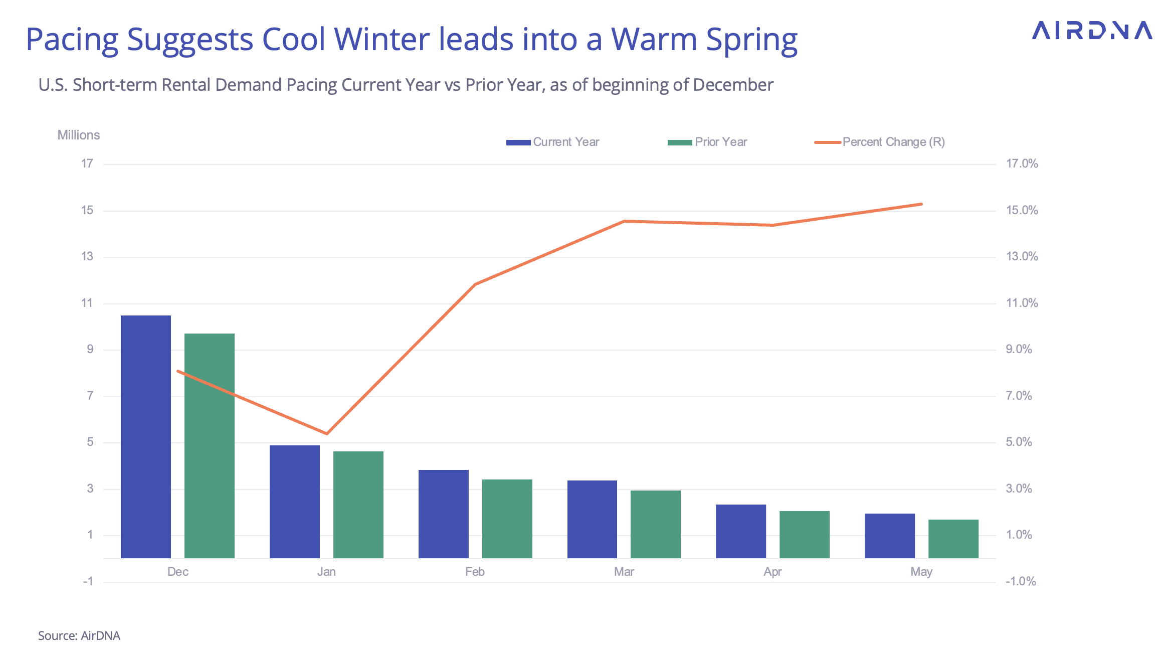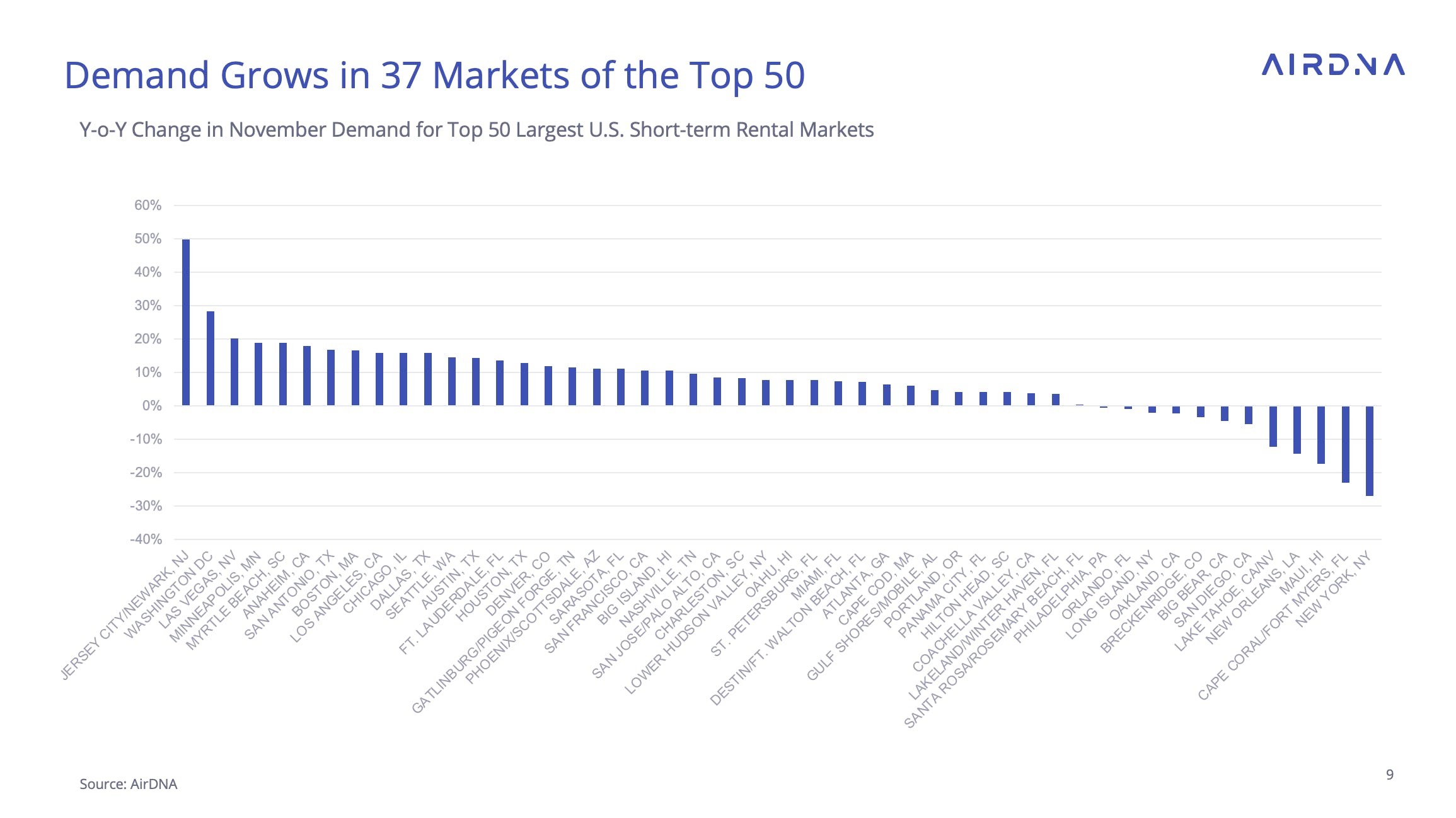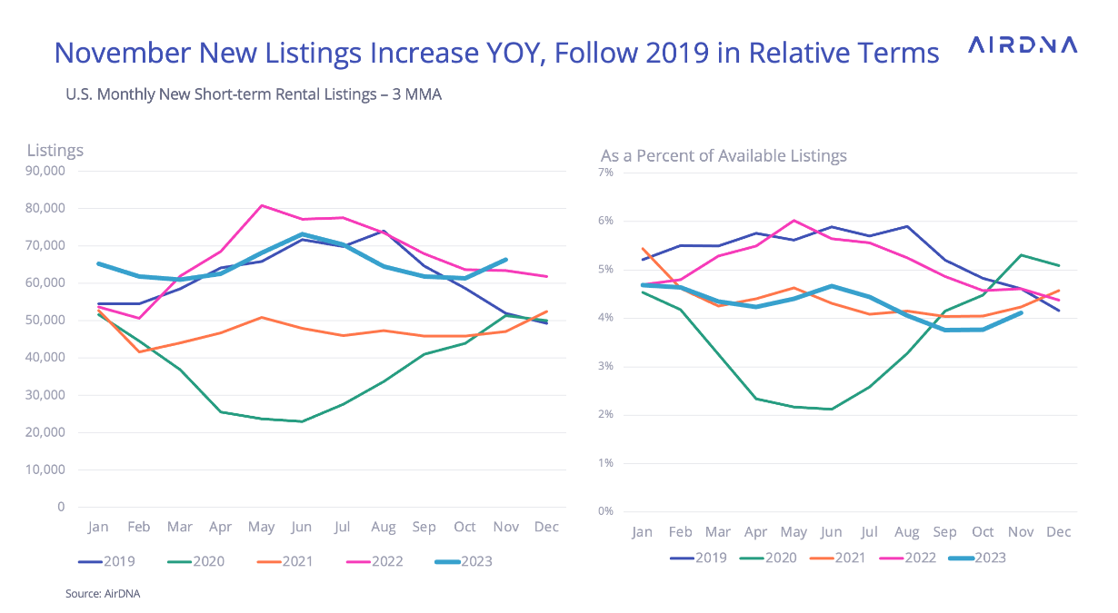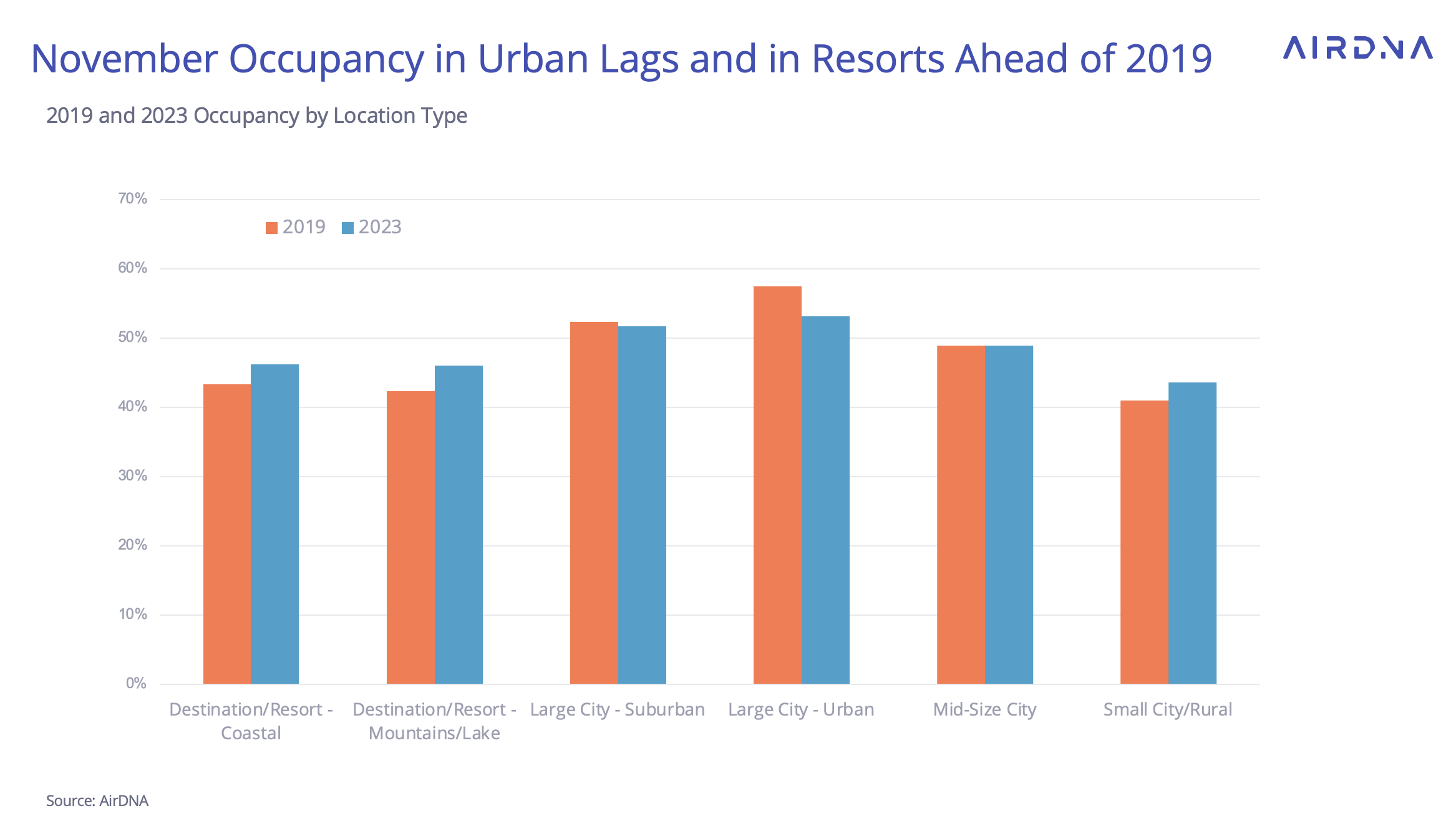 11月,美国短期租赁(STR)需求连续第三个月加速增长,这表明旅行者已经在为一个繁忙的春季做准备。尽管与过去几年的业绩高点相比有所下降,但11月业绩的提升使入住率基本与大流行前的水平持平,未来一年STR市场有望保持适度和平衡。